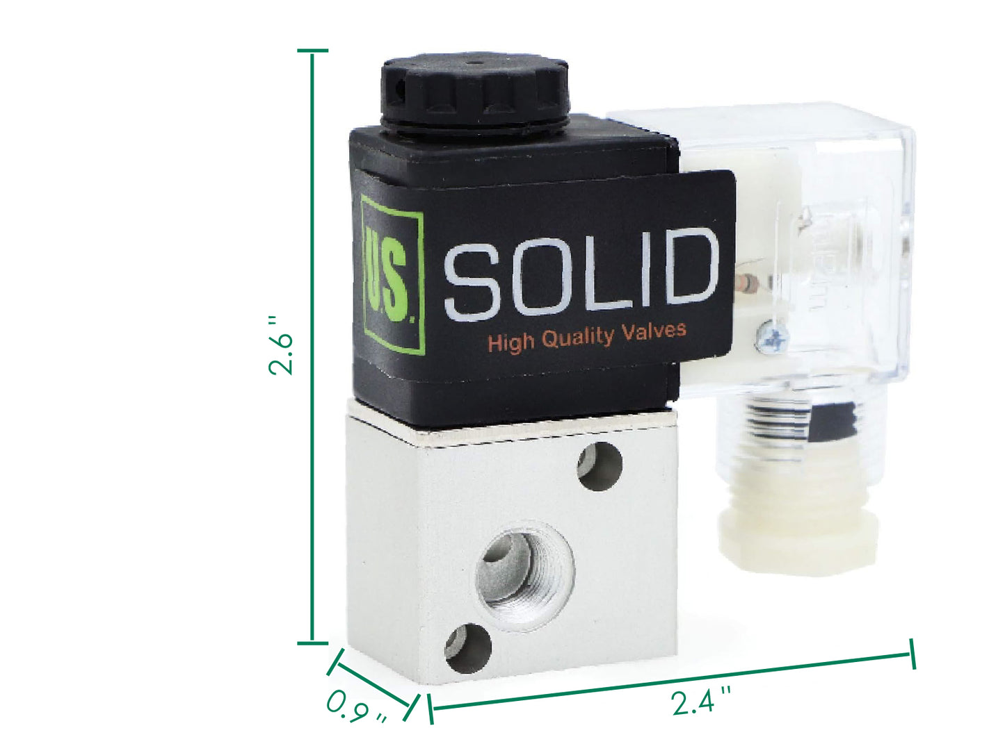 صمام الملف اللولبي الكهربائي الهوائي ثلاثي الاتجاهات ثنائي الوضع من شركة US Solid، يُمرّر الهواء إلى الأجهزة الهوائية. وهو يُشكّل حلقة وصل بين الأنظمة الإلكترونية والهوائية، مُتحكّمًا في الوضع، والتدفق، والضغط، ودرجة الحرارة. يحتوي هذا الصمام 3/2 على ثلاثة منافذ وحالتي تدفق. في حالة الإيقاف، يكون أحد الختمين مفتوحًا والآخر مغلقًا؛ وعند تنشيطه، ينعكس مساره. يمكن للهواء أن يتدفق من المنفذ 1 إلى 2، أو أن يخرج المنفذ 2 عبر المنفذ 3. مصنوع من سبائك الألومنيوم. تُستخدم الصمامات الهوائية على نطاق واسع، حيث تستخدمها الطائرات لإزالة الجليد من الزجاج الأمامي والمطر. كما يستخدمها مُصنّعو الأطعمة والمشروبات في الإنتاج. تتميز صمامات US Solid بالموثوقية، وانخفاض استهلاك الطاقة، وطول العمر، وسهولة التركيب والصيانة والتحكم، بفضل التوصيلات السلكية المُسبقة. فتحات تركيب هذا الصمام ملولبة، بمقاس M4×0.7×2.