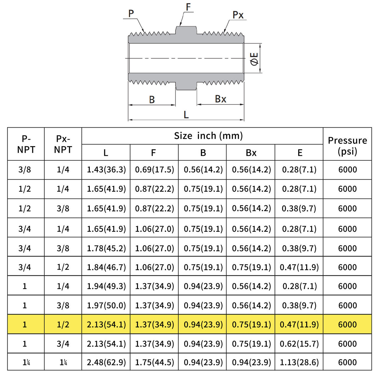 U.S. Solid 304 Edelstahl bleifrei 6000 psi Hochdruck-Sechskantnippel, 1" x 1/2" NPT Rohrverbinder mit Außengewinde (1 Stück)