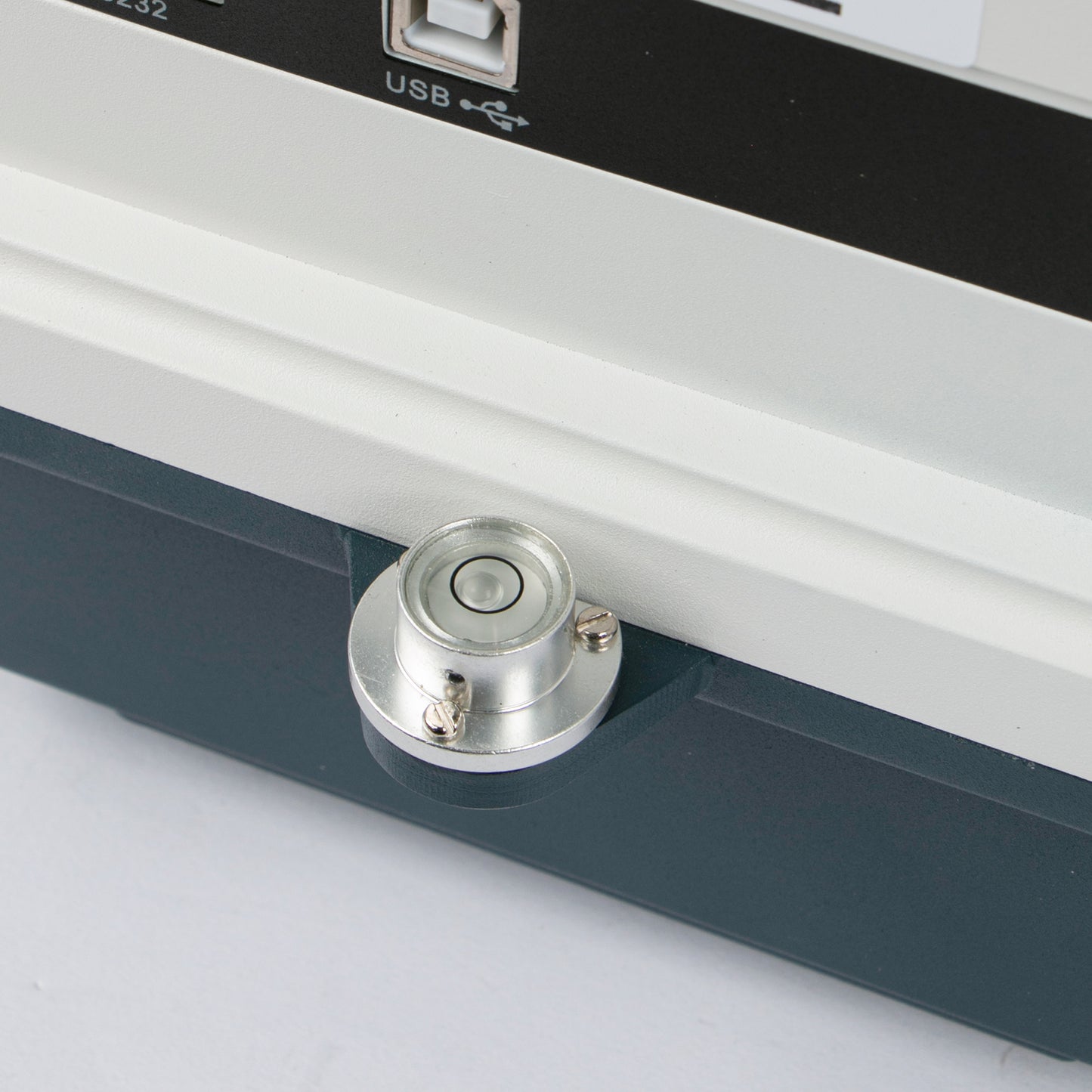 Ausrichten der Waage:Eine genaue horizontale Positionierung ist für wiederholbare Messungen und exakte Ergebnisse erforderlich. Justieren Sie die Nivellierfüße der Analysenwaage, bis die Luftblase in der Anzeige zentriert ist.