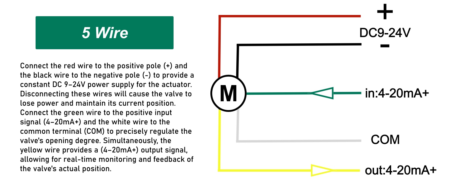 The 5 wire model is perfect for situations where it is important for the status of the valve to be displayed. Convenient wiring diagrams will walk you through the process of connecting the valve to power, and connecting the status indicator wires. This 5 wire model is an ideal fit for home automation systems.