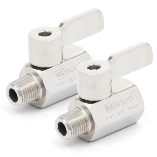 Mini válvula de bola sólida estadounidense de 1/4", acero inoxidable 304, rosca hembra × macho NPT, 2 unidades