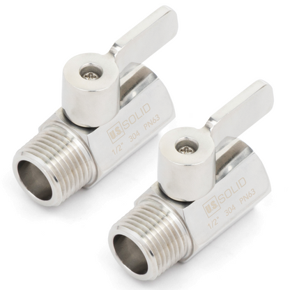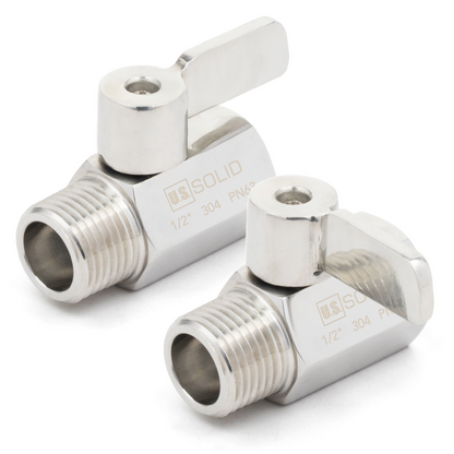 Diseñada para aplicaciones de plomería doméstica confiables, la mini válvula de bola US Solid está fabricada con acero inoxidable 304 duradero para resistir la corrosión causada por el agua, los detergentes y la exposición a la intemperie. Sus roscas internas y externas de 1/2" NPT/G garantizan la compatibilidad con tuberías domésticas estándar, calentadores de agua, lavadoras y sistemas de mangueras de jardín. La manija de palanca de 90 grados funciona suavemente para un cierre rápido en caso de fugas o mantenimiento rutinario. Los sellos reforzados de PTFE brindan resistencia a fugas a largo plazo, mientras que su diseño ligero pero robusto simplifica la instalación y el manejo. Una solución práctica y económica para necesidades diarias como: