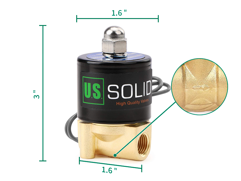 La flecha en la válvula indica la dirección del flujo. La mayoría de las válvulas US Solid son unidireccionales, lo que significa que están diseñadas para funcionar correctamente solo cuando el fluido fluye en la dirección de la flecha. Si se instalan en la dirección opuesta, la válvula podría no funcionar correctamente (por ejemplo, una válvula normalmente cerrada podría no cerrarse).