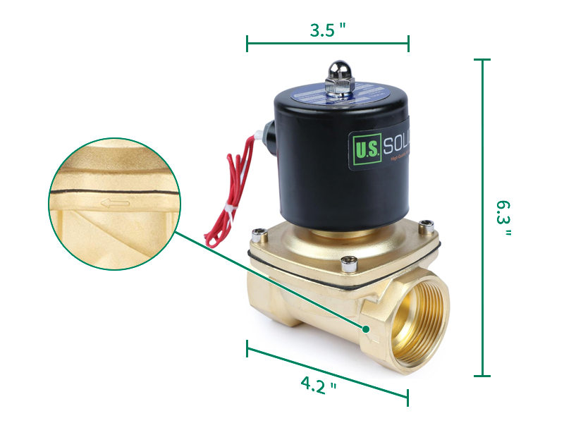 La flecha en la válvula indica la dirección del flujo. La mayoría de las válvulas US Solid son unidireccionales, lo que significa que están diseñadas para funcionar correctamente solo cuando el fluido fluye en la dirección de la flecha. Si se instalan en la dirección opuesta, la válvula podría no funcionar correctamente (por ejemplo, una válvula normalmente cerrada podría no cerrarse).
