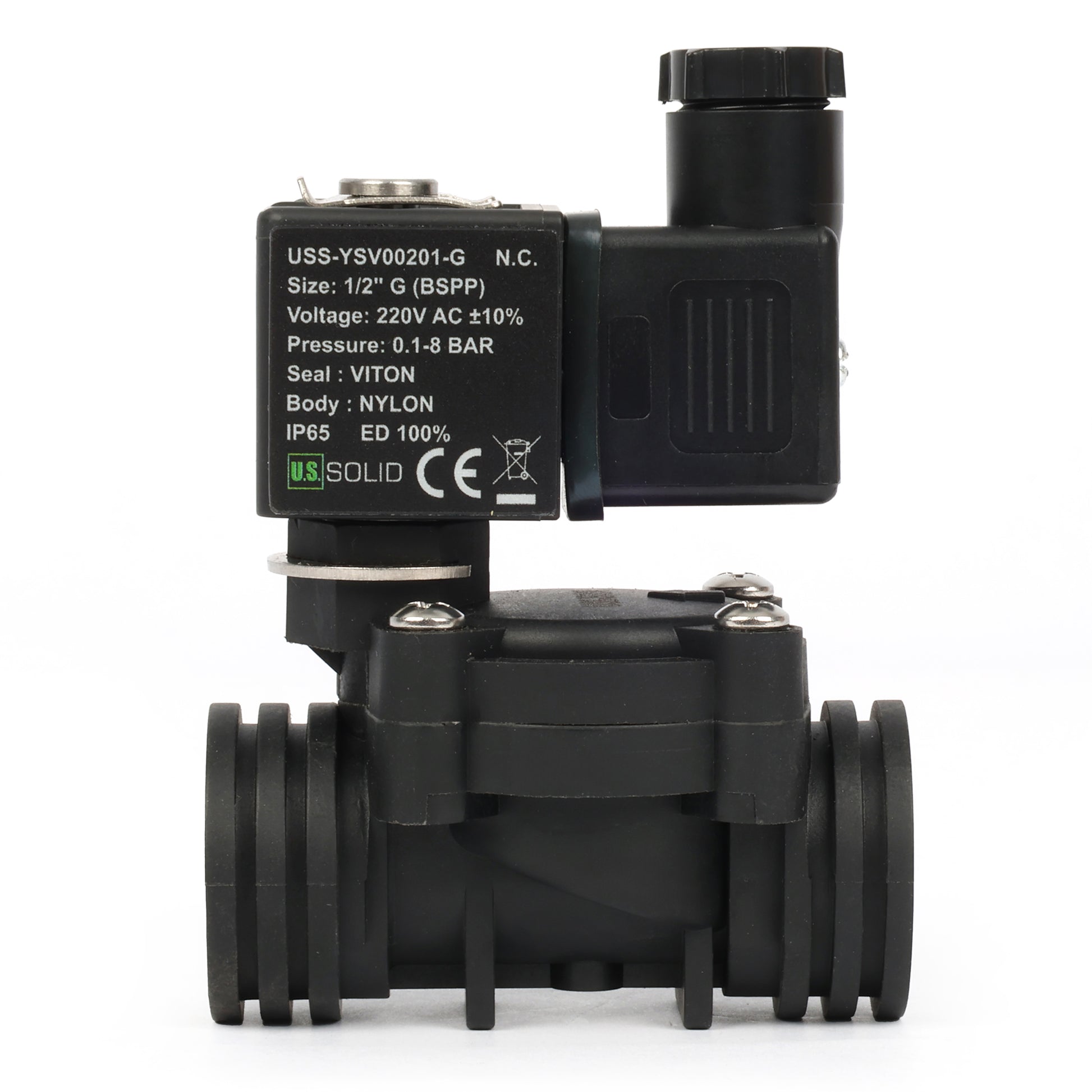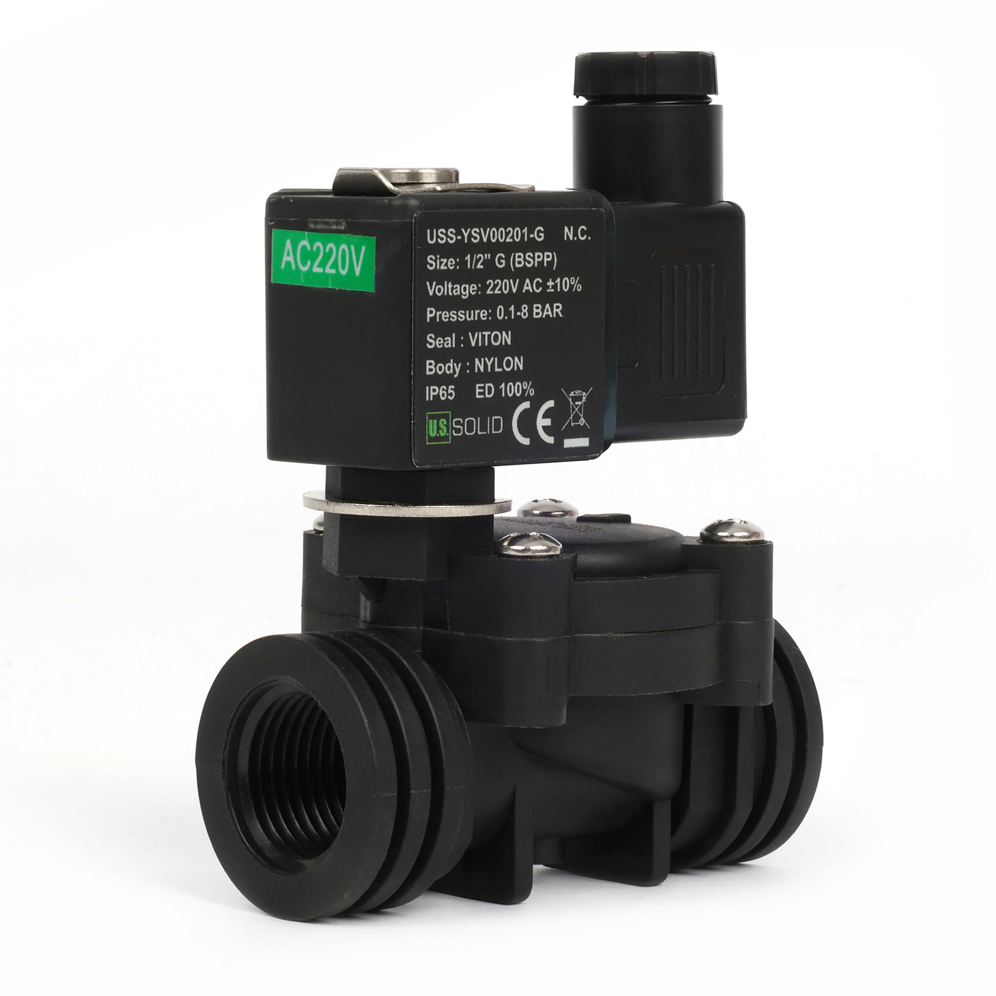 U.S. SolidUSS-YSV 시리즈는 상시 닫힘 및 상시 열림 모델을 모두 제공하는 2방향 전기 솔레노이드 밸브로, 반직접 작동 방식을 특징으로 합니다. 이 밸브는 220/24VAC 및 24/12VDC 전압으로 제공되며, 산업용 황동 또는 304 스테인리스 스틸 본체와 바이톤 씰 재질로 제작되었습니다. 고품질 코일을 특징으로 하는 이 솔레노이드 밸브는 1초 이내에 다이어프램의 개폐를 효율적으로 제어하여 정밀한 유량 제어를 가능하게 합니다.