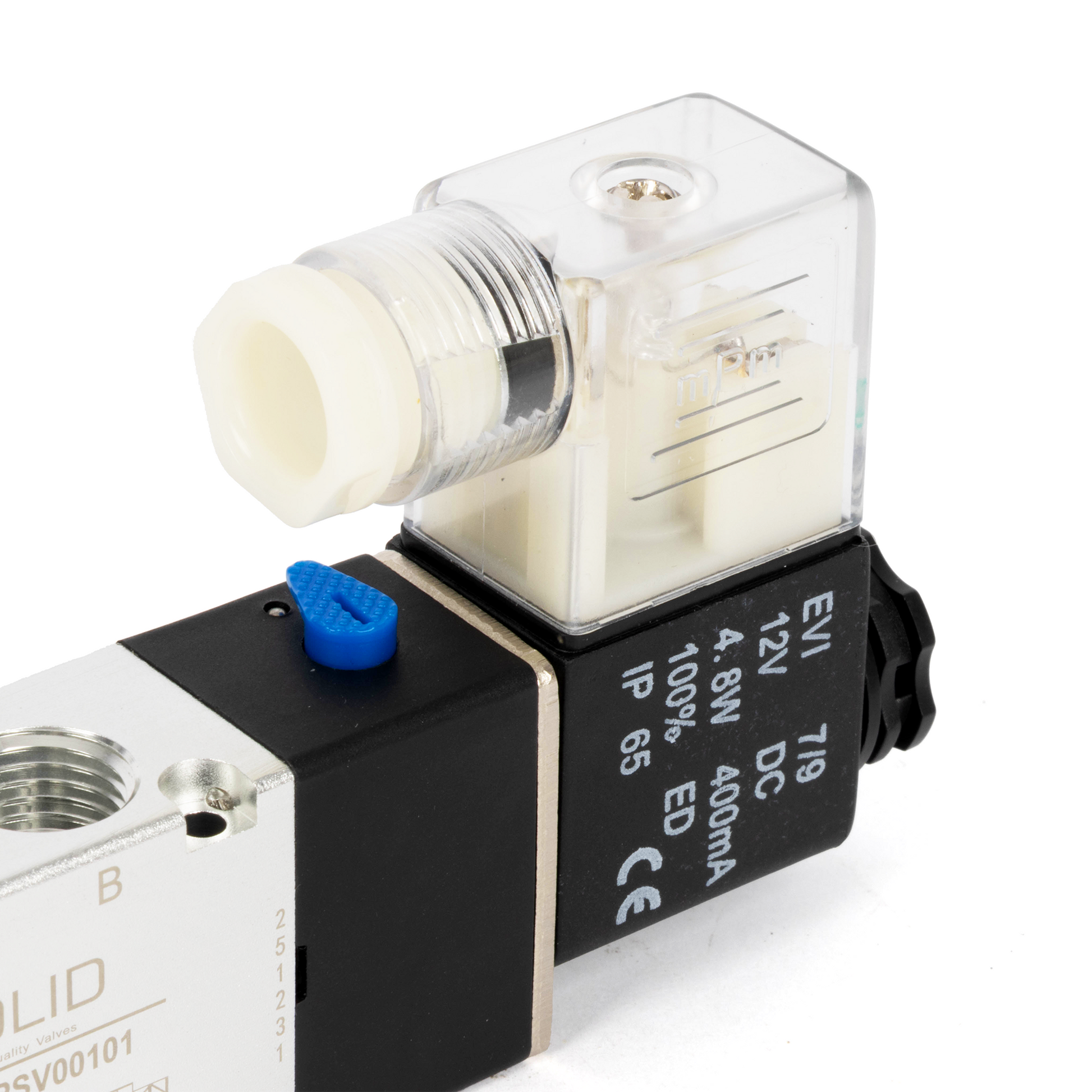 U.S. Solid 1/4인치 5방향 2위치 공압 솔레노이드 밸브, DC 12V, 상시 닫힘, 부속품 및 소음기 포함