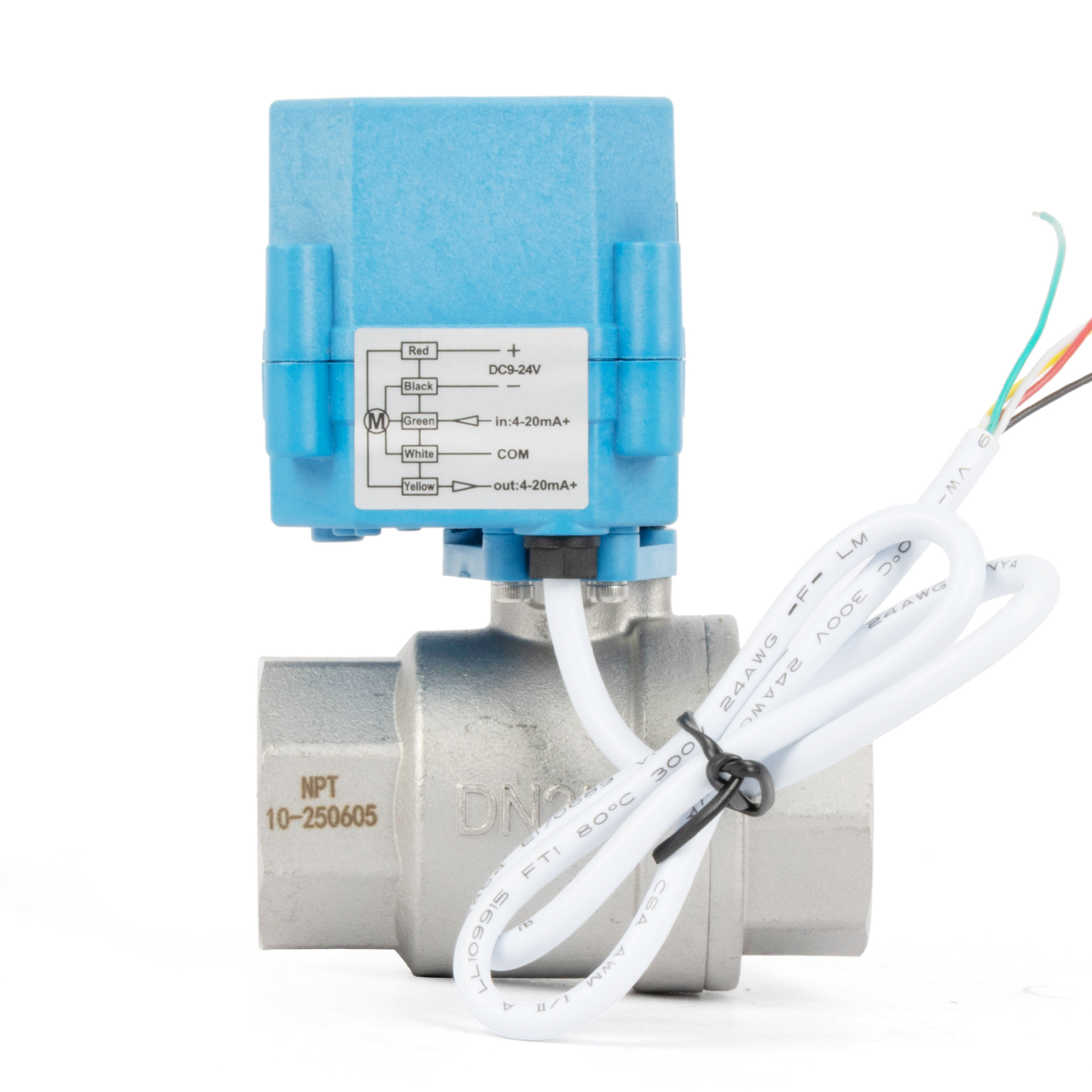 Injap Bola Bermotor Berkadar 1" - Keluli Tahan Karat, DC 9–24V, 5-Wayar dengan Penunjuk Kedudukan, IP67, Port Penuh
