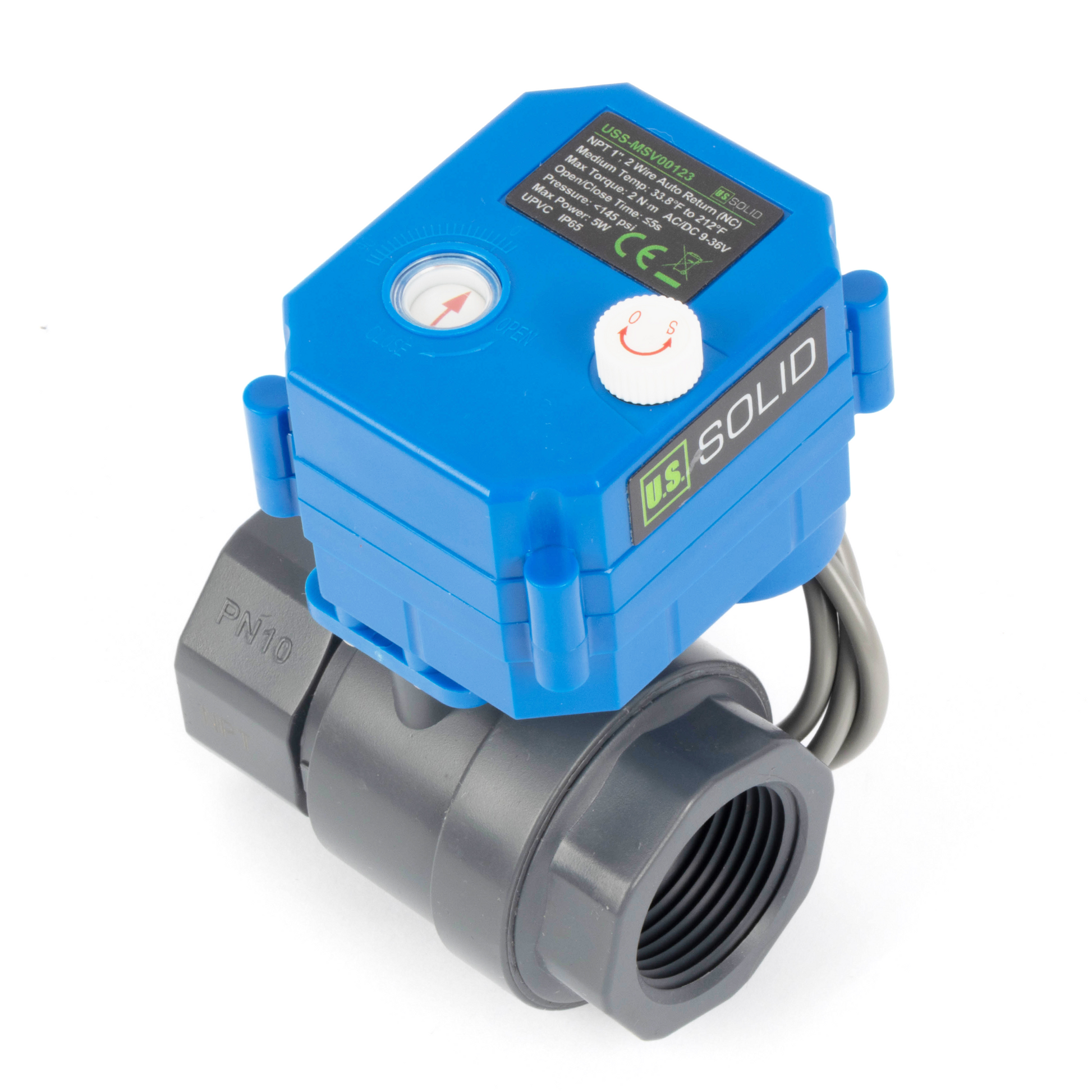 1" UPVC motorisert kuleventil - 2-leders automatisk retur med manuell funksjon, 9–36 V AC/DC, normalt lukket
