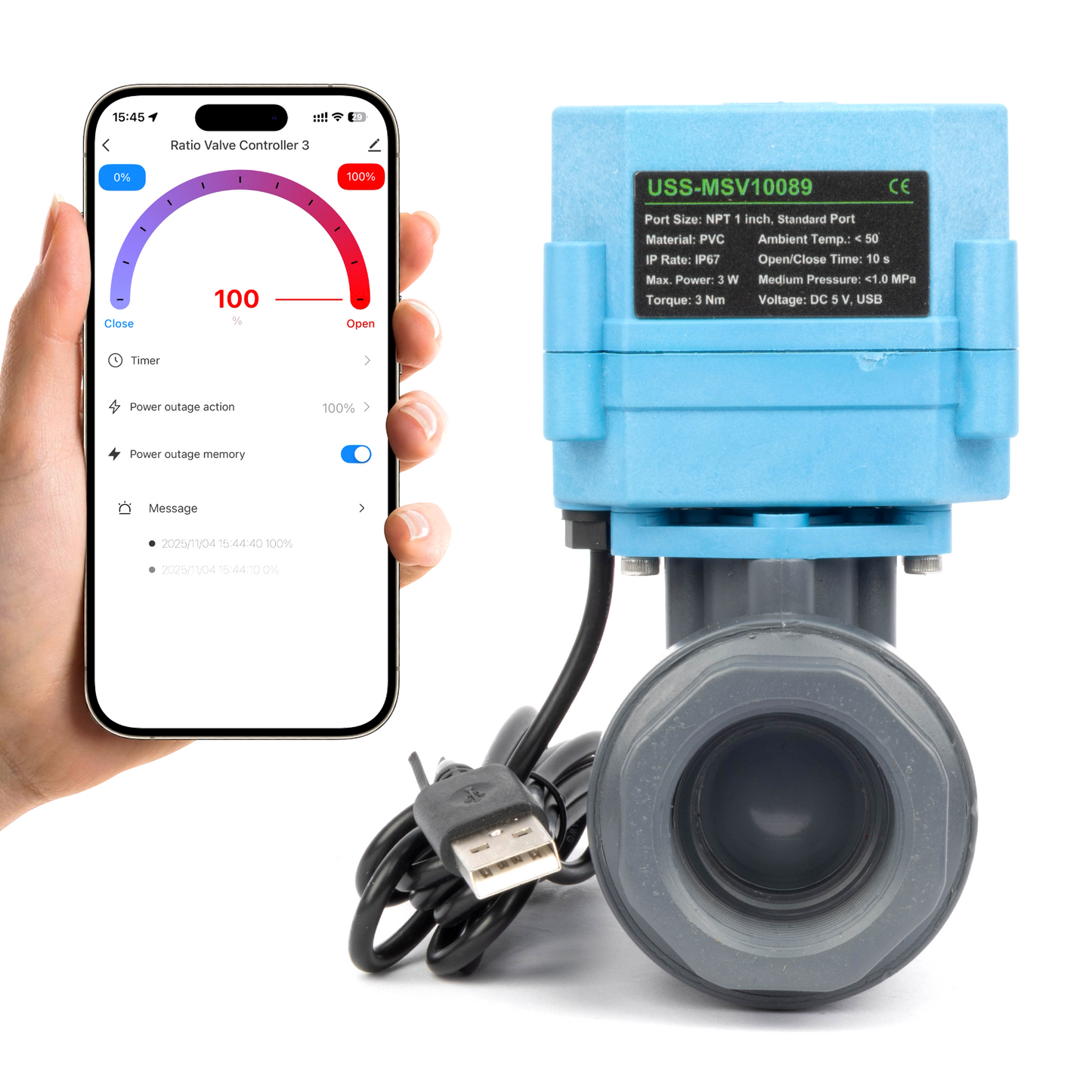 U.S. Solid Smart motorisert kuleventil er en ny, innovativ motorisert kuleventil som leveres med en smart kontrollfunksjon. Den smarte ventilen kan styres av en applikasjon på mobile enheter etter at nettverksdistribusjon er satt opp for tilkobling til Wi-Fi. Det er et revolusjonerende produkt innen intelligens og brukervennlighet sammenlignet med en tradisjonell motorisert kuleventil.