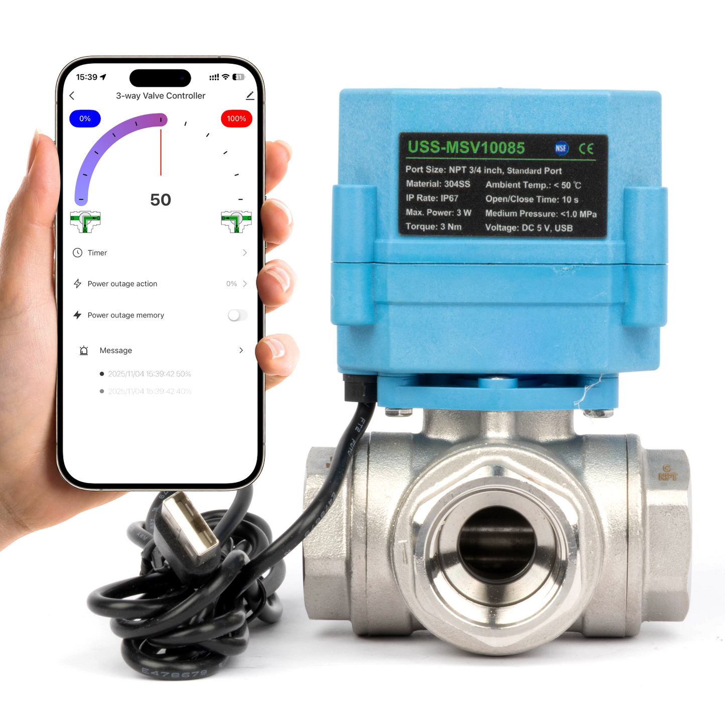 U.S. Solid Smart motorisert kuleventil er en ny, innovativ motorisert kuleventil som leveres med en smart kontrollfunksjon. Den smarte ventilen kan styres av en applikasjon på mobile enheter etter at nettverksdistribusjon er satt opp for tilkobling til Wi-Fi. Det er et revolusjonerende produkt innen intelligens og brukervennlighet sammenlignet med en tradisjonell motorisert kuleventil.