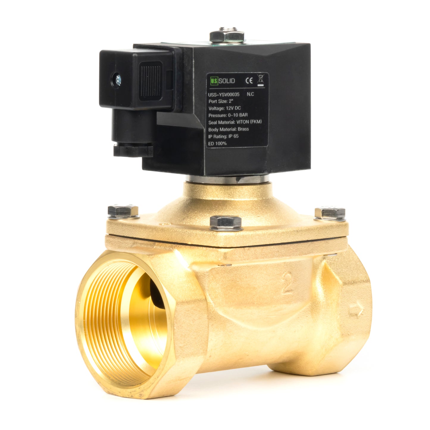 The U.S. Solid USS-YSV Series offers 2-way electric solenoid valves with both normally closed and normally open models, featuring semi-direct-acting functionality. These valves are available in 220/24 VAC and 24/12 VDC voltages and are constructed with industrial-grade brass or 304 stainless steel bodies and viton seal materials. Featuring a high-quality coil, this solenoid valve efficiently controls the opening and closing of the diaphragm in under 1 second for precise flow control. Suitable for various media types such as air, water, oil, natural gas, gasoline, diesel fuel, kerosene, and low viscosity fluids (less than 20 centistokes), this valve is designed for reliable performance.