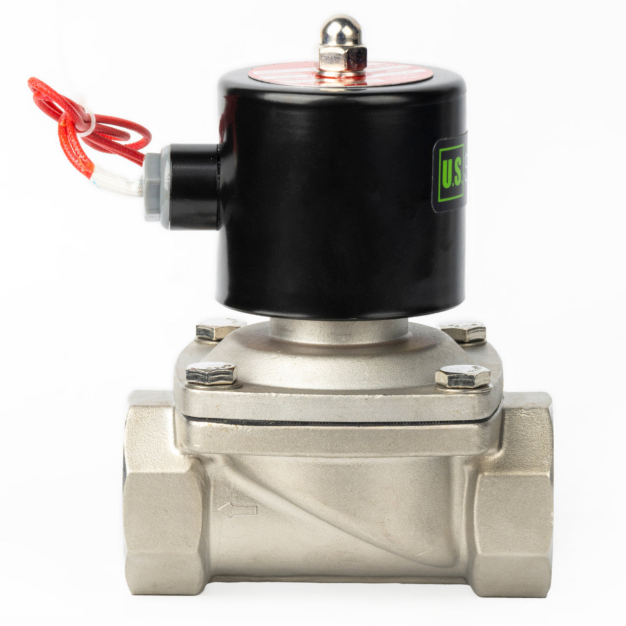 The arrow on the valve indicates the flow direction. Most U.S. Solid valves are unidirectional, meaning they are designed to operate correctly only when fluid flows in the direction of the arrow. If installed in the opposite direction, the valve may not function properly (e.g., a Normally Closed valve may fail to close).