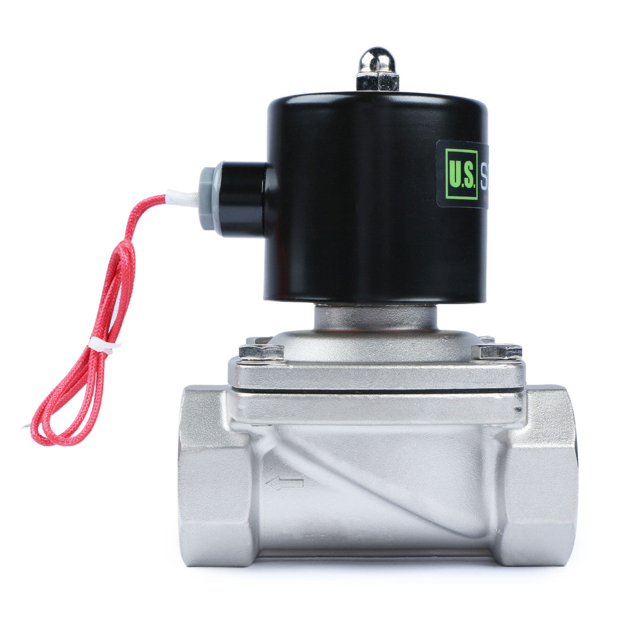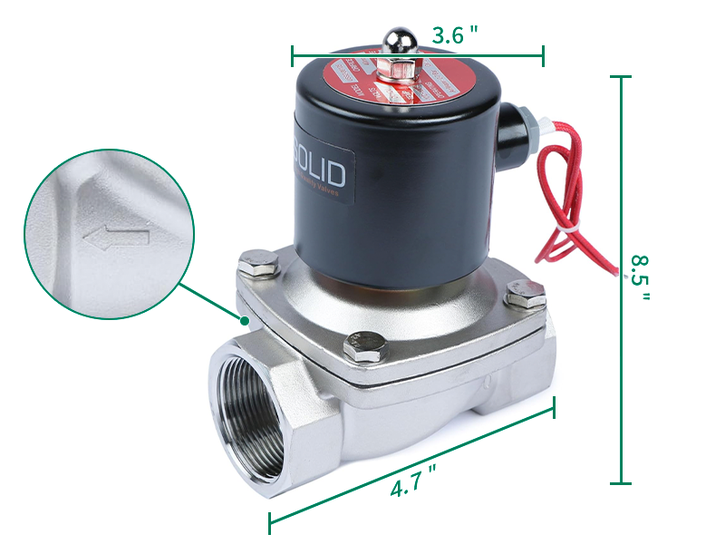 The arrow on the valve indicates the flow direction. Most U.S. Solid valves are unidirectional, meaning they are designed to operate correctly only when fluid flows in the direction of the arrow. If installed in the opposite direction, the valve may not function properly (e.g., a Normally Closed valve may fail to close).