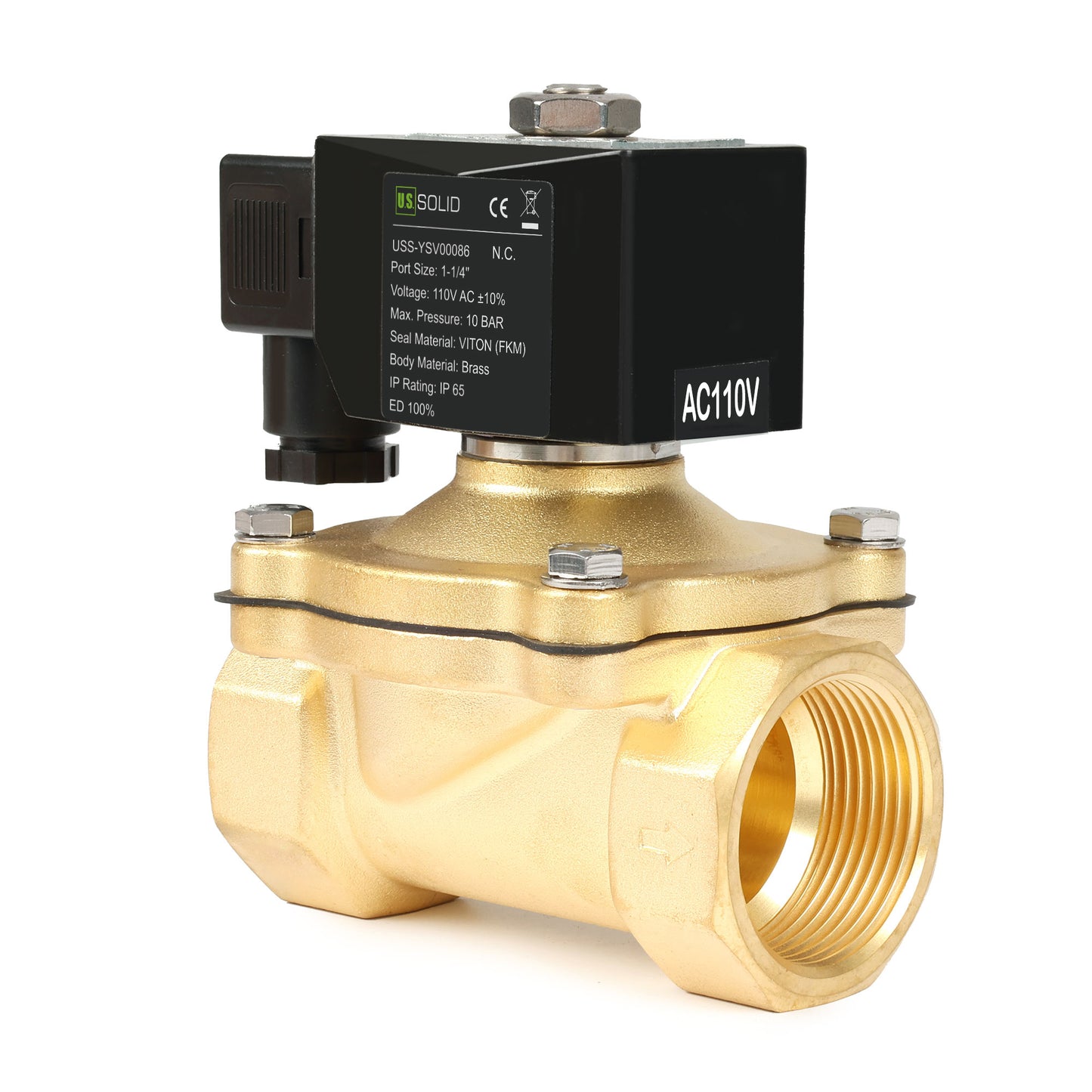 The U.S. Solid USS-YSV Series offers 2-way electric solenoid valves with both normally closed and normally open models, featuring semi-direct-acting functionality. These valves are available in 220/24 VAC and 24/12 VDC voltages and are constructed with industrial-grade brass or 304 stainless steel bodies and viton seal materials. Featuring a high-quality coil, this solenoid valve efficiently controls the opening and closing of the diaphragm in under 1 second for precise flow control. Suitable for various media types such as air, water, oil, natural gas, gasoline, diesel fuel, kerosene, and low viscosity fluids (less than 20 centistokes), this valve is designed for reliable performance.