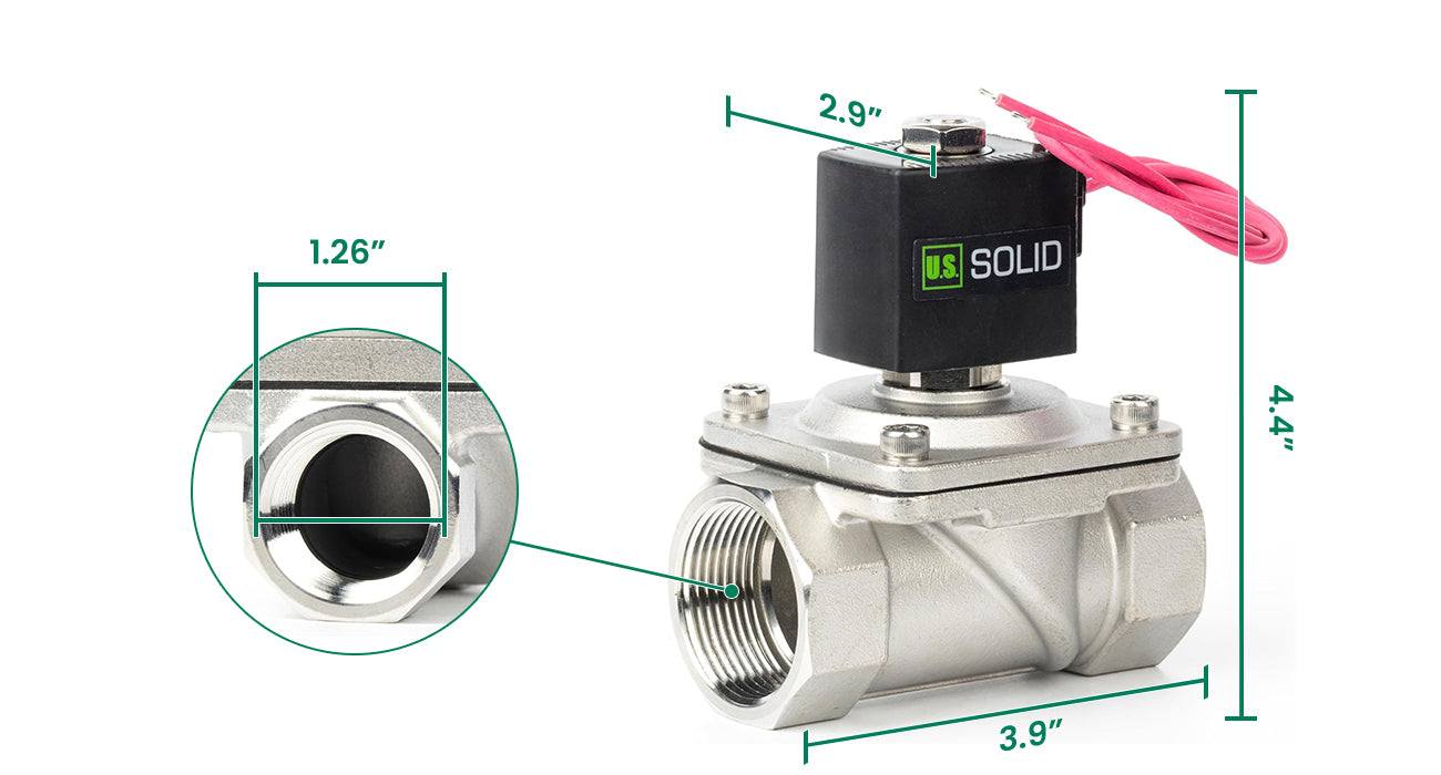 The arrow on the valve indicates the flow direction. Most U.S. Solid valves are unidirectional, meaning they are designed to operate correctly only when fluid flows in the direction of the arrow. If installed in the opposite direction, the valve may not function properly (e.g., a Normally Closed valve may fail to close).