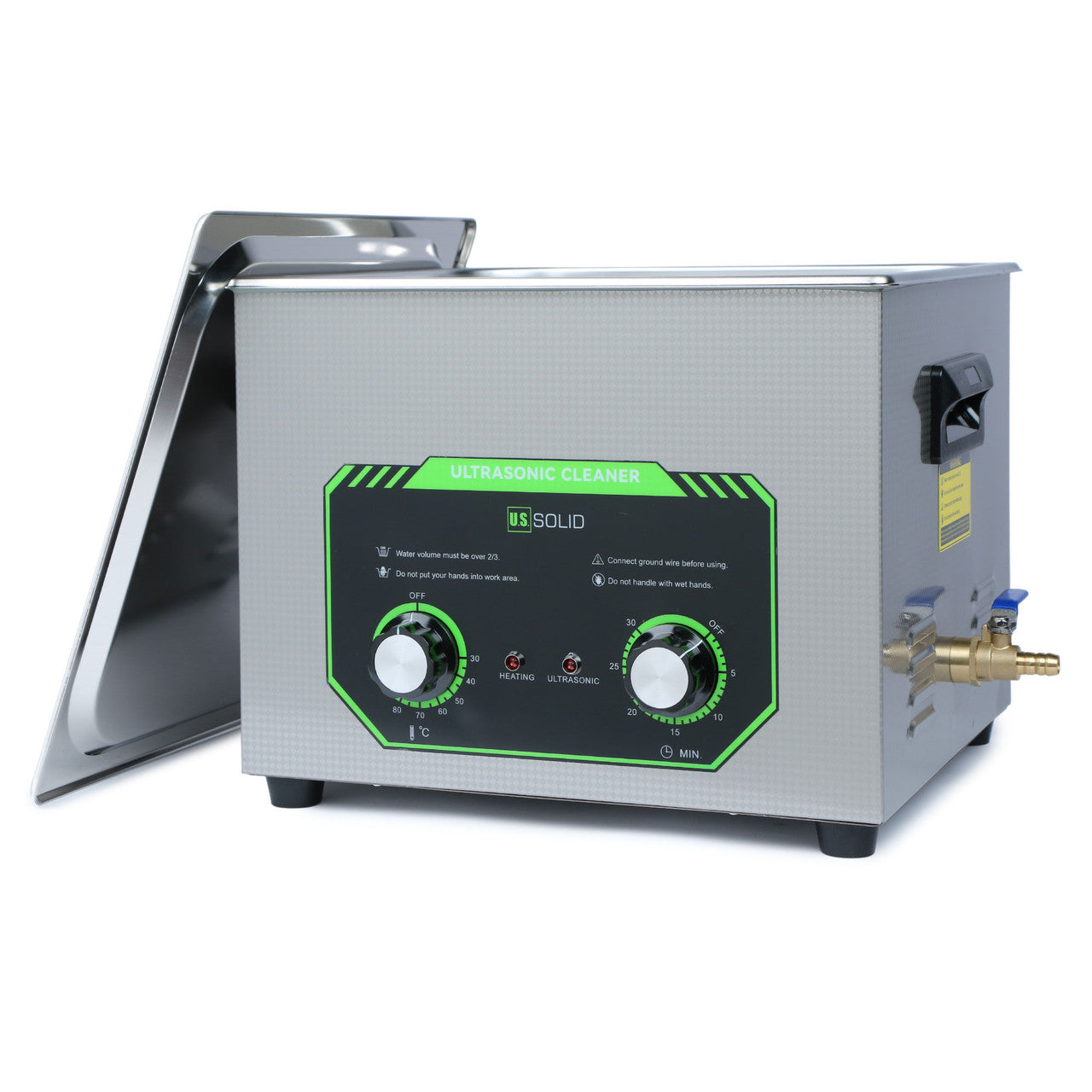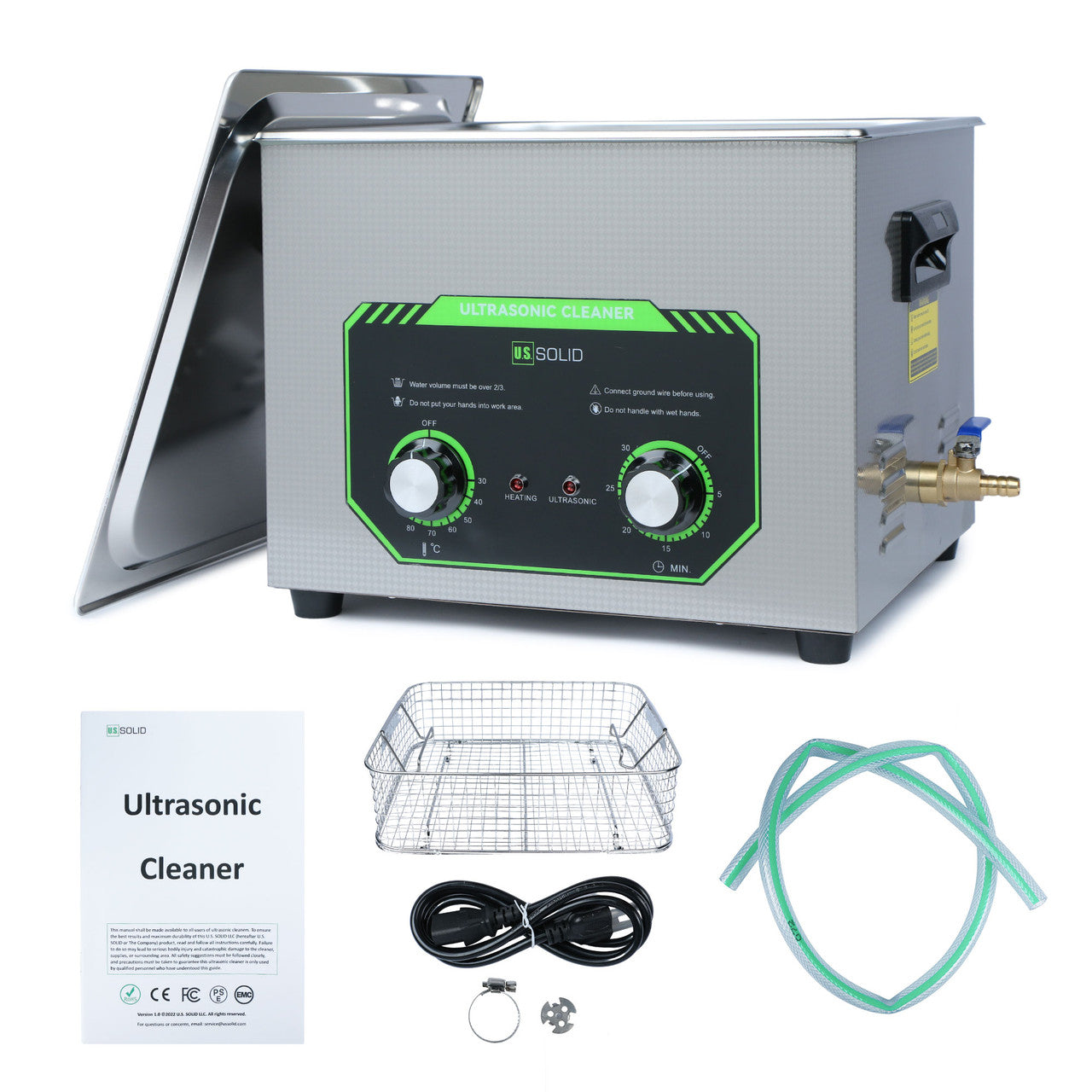The U.S. Solid 40kHz Ultrasonic Cleaner features a professional-grade stainless steel tank with intuitive knob-controlled digital timer and heater (up to 80°C/176°F), delivering fast, thorough cleaning through effortless operation. Its high-end transducers generate intense high-frequency sound waves that create cavitation bubbles in the cleaning solution. When these bubbles collapse, they release energy that removes dirt and grease from all surfaces - including hard-to-reach areas of jewelry, tools, and small industrial parts - without requiring scrubbing. This efficient process, combined with durable stainless steel construction, makes it ideal for both professional and personal use.