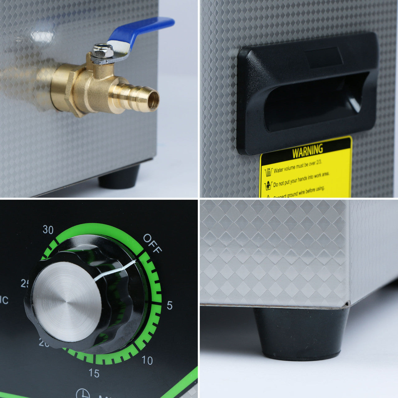 - Wide Applications: You can use the machine to clean glasses, jewelry, dentures, razors, coins, PCB, carburetor, gun parts, automotive parts, brass,injectors, or even chemical fiber material.
