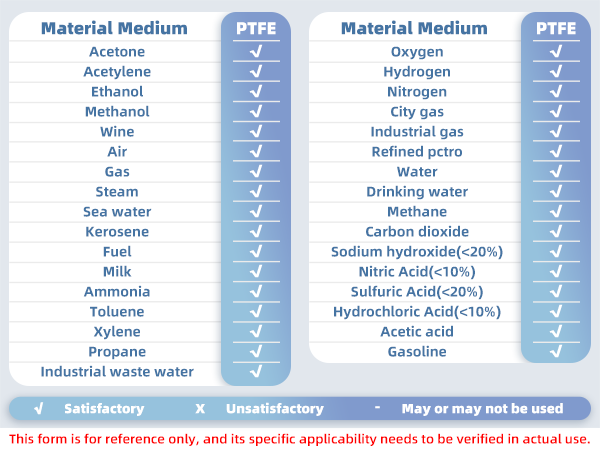 CHEMICAL RESISTANCE CHART FOR BALL VALVE SEAT MATERIALS