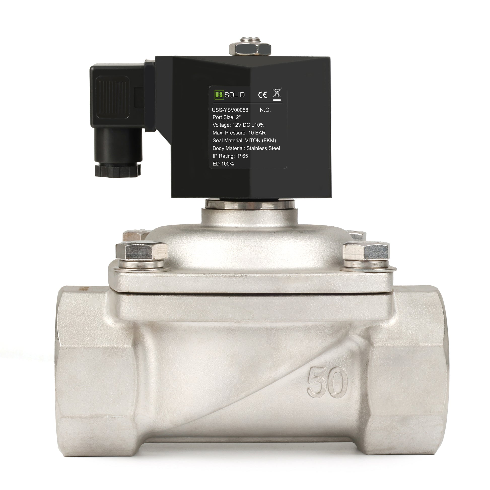 The U.S. Solid USS-YSV Series offers 2-way electric solenoid valves with both normally closed and normally open models, featuring semi-direct-acting functionality. These valves are available in 220/24 VAC and 24/12 VDC voltages and are constructed with industrial-grade brass or 304 stainless steel bodies and viton seal materials. Featuring a high-quality coil, this solenoid valve efficiently controls the opening and closing of the diaphragm in under 1 second for precise flow control. Suitable for various media types such as air, water, oil, natural gas, gasoline, diesel fuel, kerosene, and low viscosity fluids (less than 20 centistokes), this valve is designed for reliable performance.