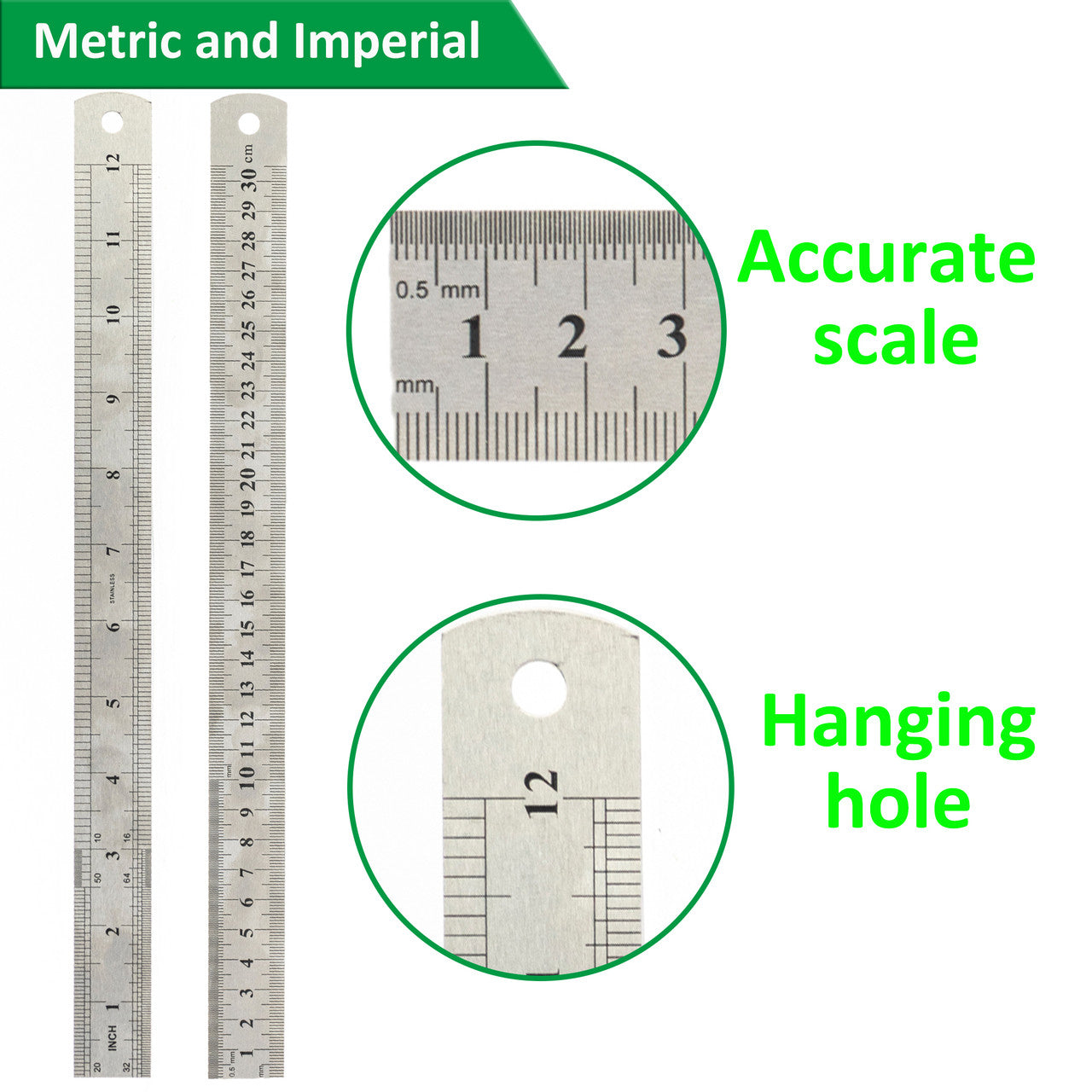 2PCS Stainless Steel 12-Inch Ruler with Metric Units