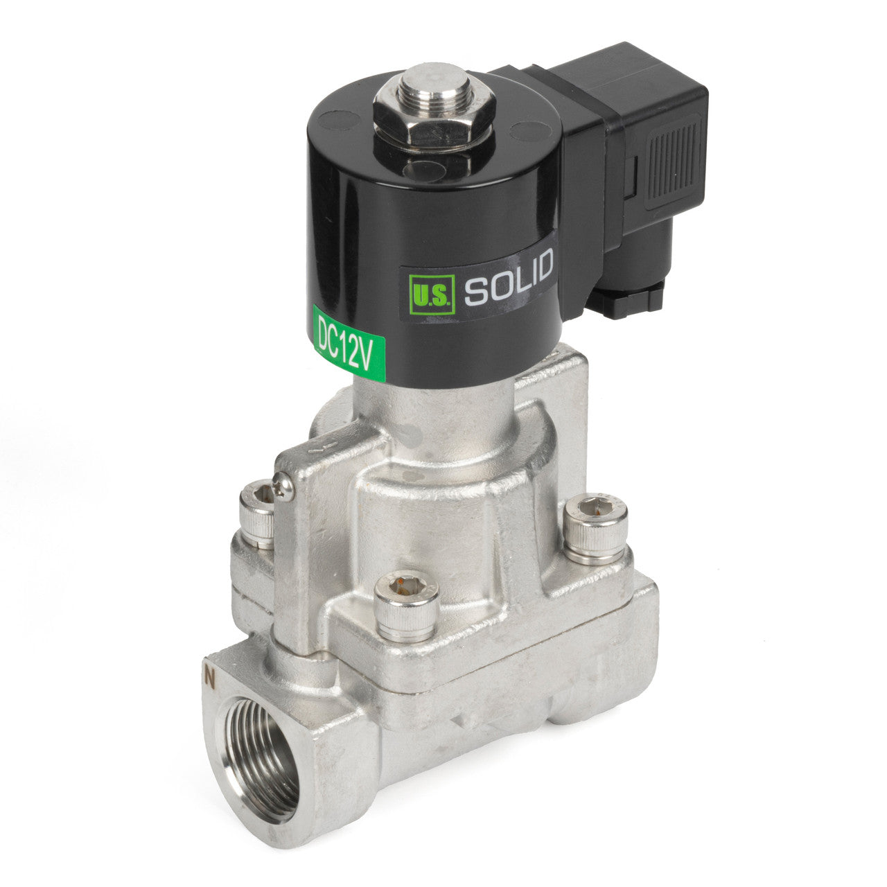 The arrow on the valve indicates the flow direction. Most U.S. Solid valves are unidirectional, meaning they are designed to operate correctly only when fluid flows in the direction of the arrow. If installed in the opposite direction, the valve may not function properly (e.g., a Normally Closed valve may fail to close).