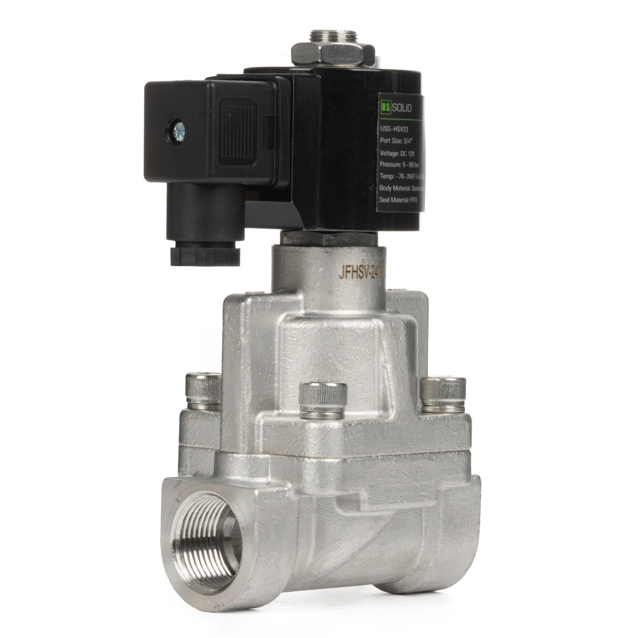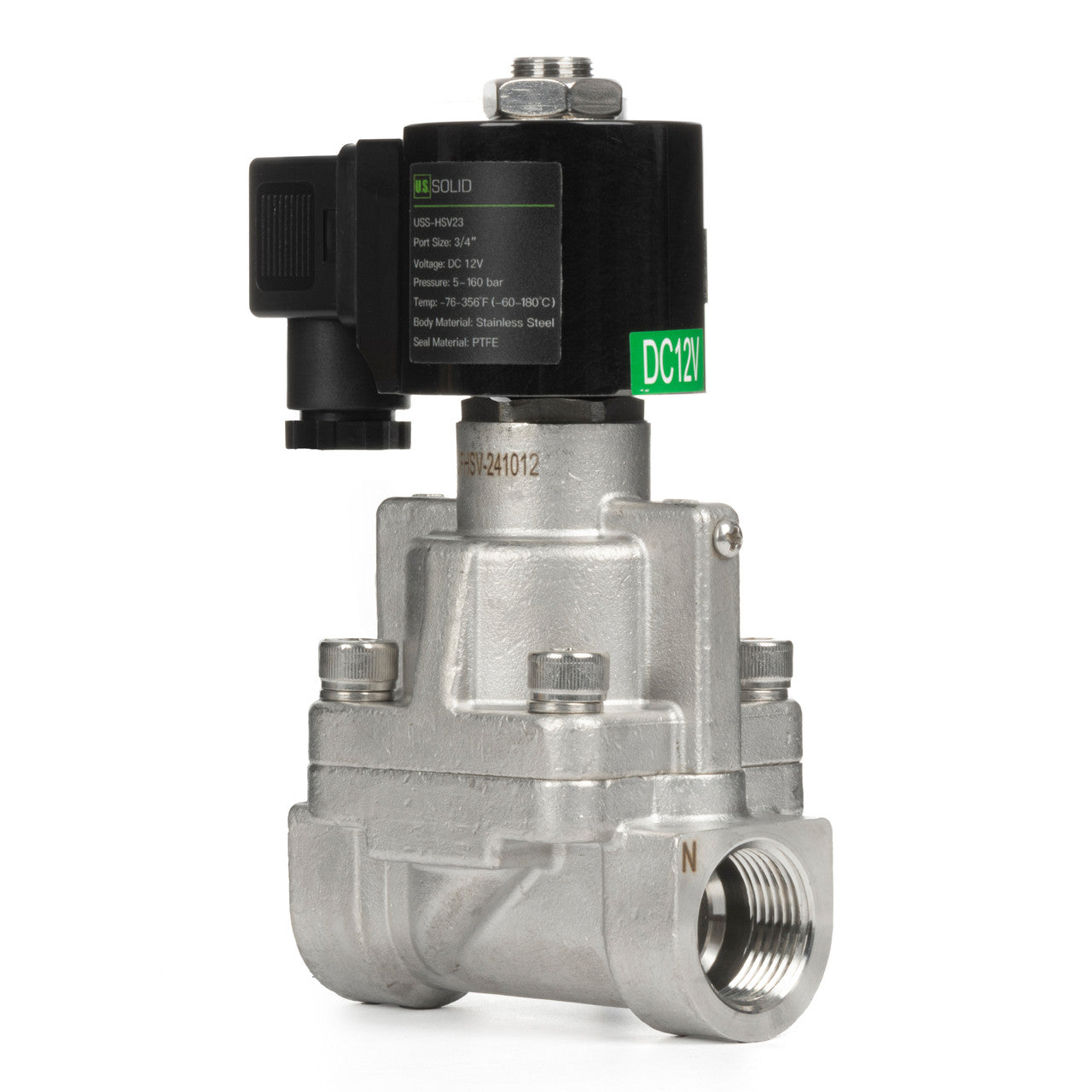 3/4" High Pressure Solenoid Valve - 160 bar Stainless Steel , 12V DC High-Pressure High-Temperature Solenoid Valve, -76-356°F, Normally Closed
