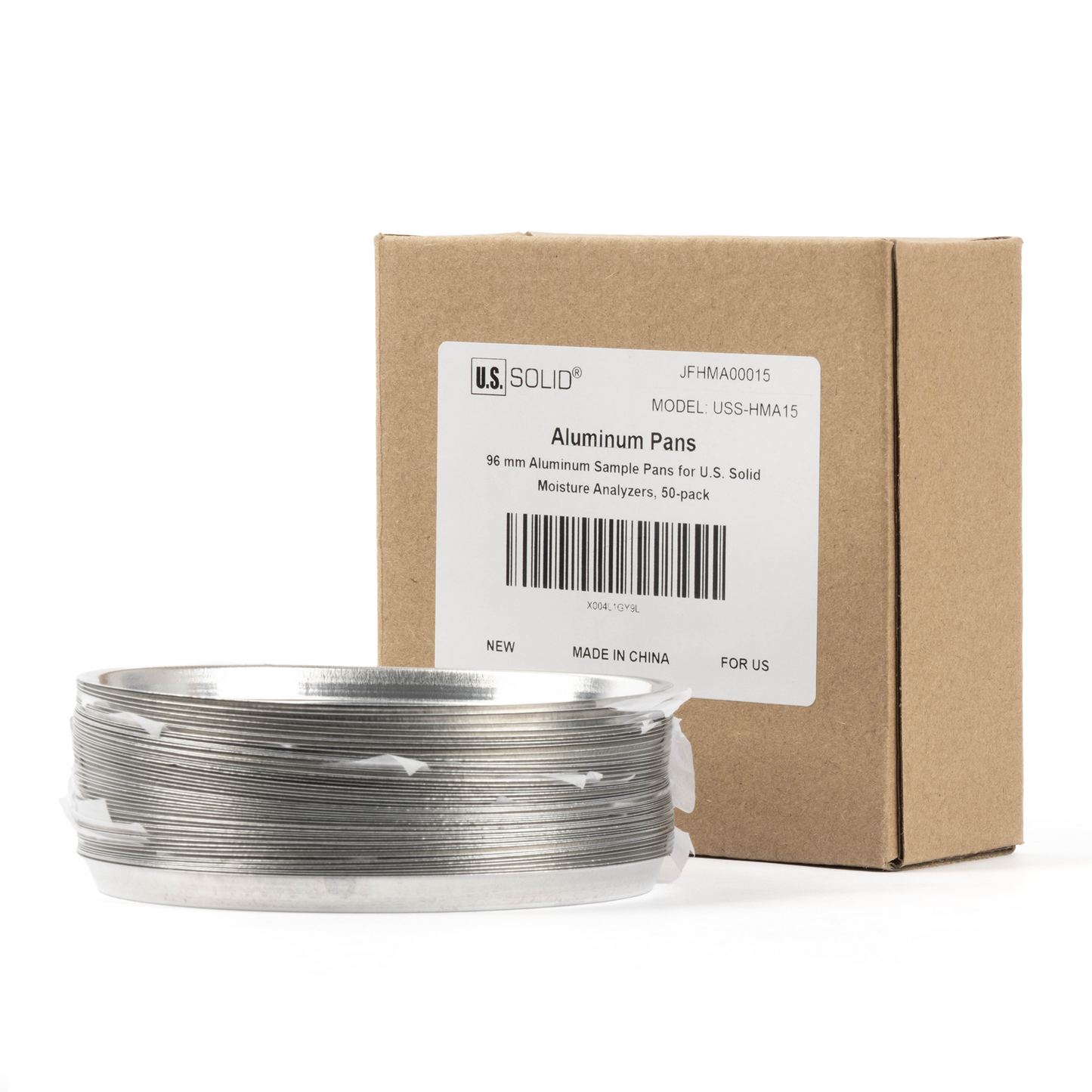 The Aluminum Sample Pan is designed for moisture analysis in laboratories or industrial settings. With a diameter of φ96 mm, they are made from quality, corrosion-resistant Aluminum. Each pack contains 50 pans, compatible with U.S. Solid USS-HMA1X and 2X series moisture analyzer and other moisture analzyer with 96 mm diameter. These pans provide a cost-effective, versatile, and durable solution for moisture analysis needs.