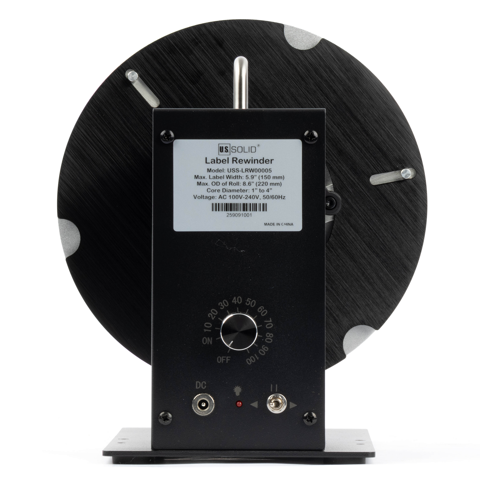 The U.S. Solid Automatic Label Rewinding Machine simplifies label management with 9-speed adjustments to match your printer and bi-directional winding (forward/backward). It creates compact 3" rolls for easy storage, supports coreless rewinding or 1"-4" cores (varies by model), and handles label widths up to 150 mm (5.91") with roll diameters up to 220 mm (8.6"). Features like an adjustable paper guide and Forward/Off/Backward switch ensure precision and efficiency, eliminating manual handling. Compatible with diverse workflows, its tool-free design boosts productivity while saving time and space. Built for durability, it offers reliable performance for high-volume tasks, backed by U.S. Solid’s quality guarantee.