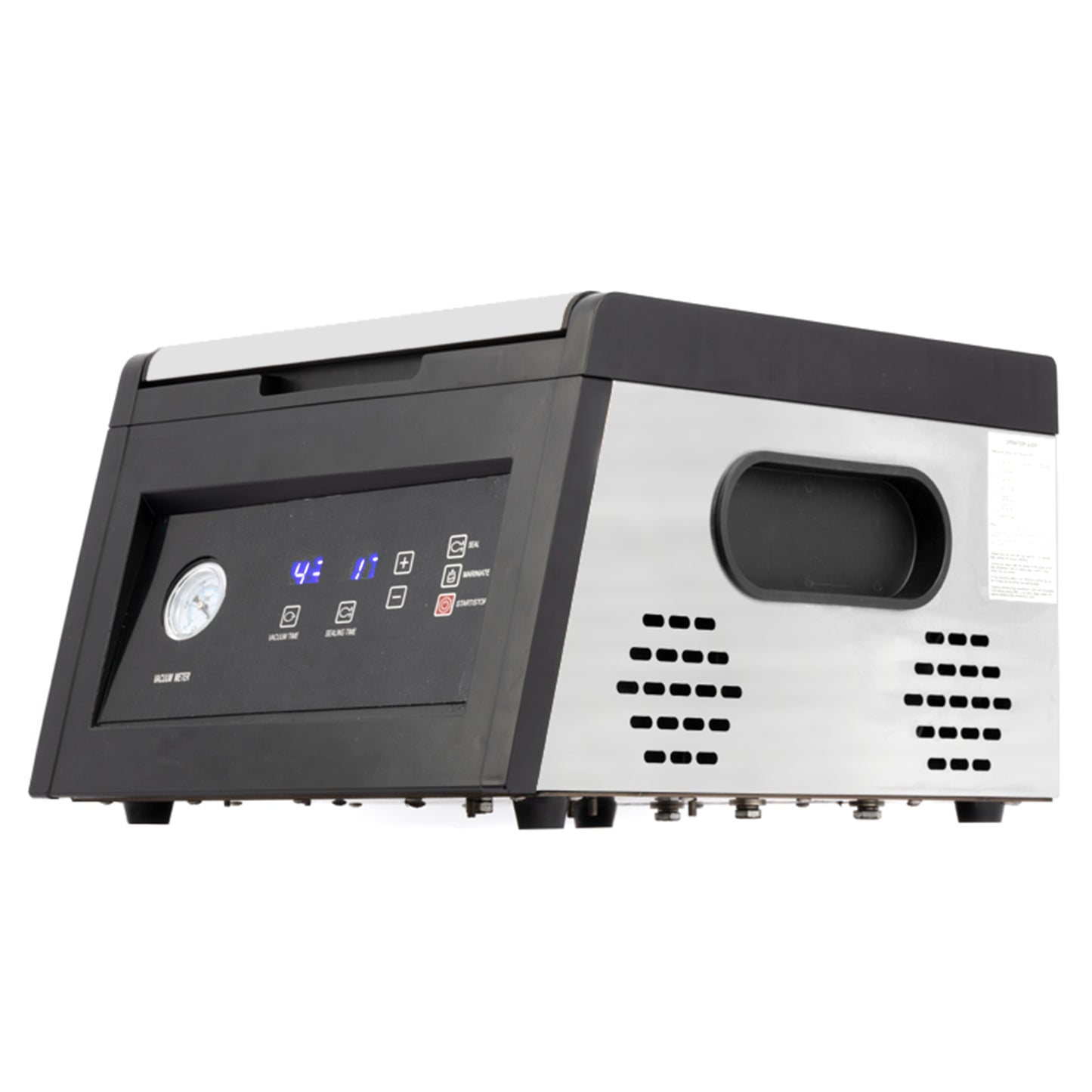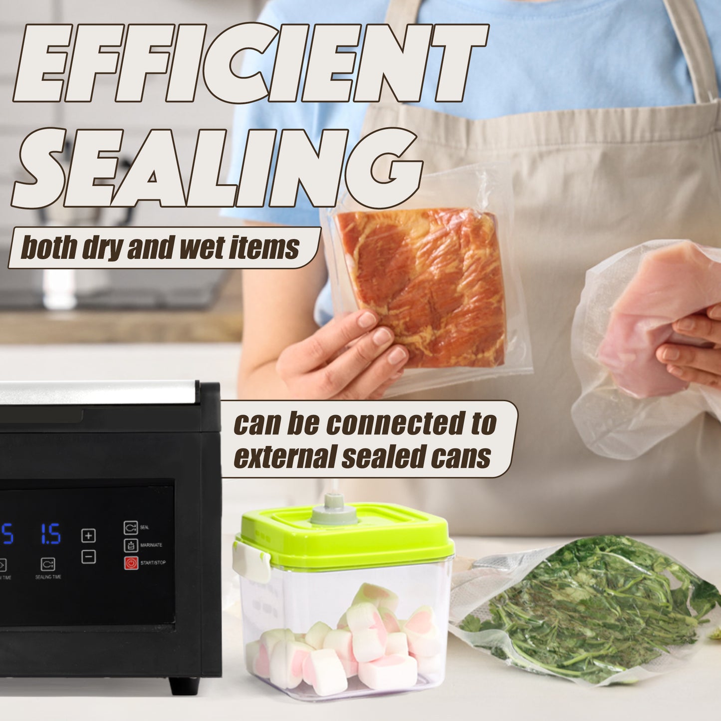 Achieve professional-quality vacuum sealing at home with the chamber vacuum sealer, perfect for preserving food freshness and extending shelf life. This chamber vacuum sealer has multiple uses as it can be connected to external vacuum canisters, providing a better storage environment for your canned food. The adjustable features of this machine enable you to customize your vacuum sealing process with adjustable sealing time and vacuum pressure settings, ensuring optimal results for various food items.