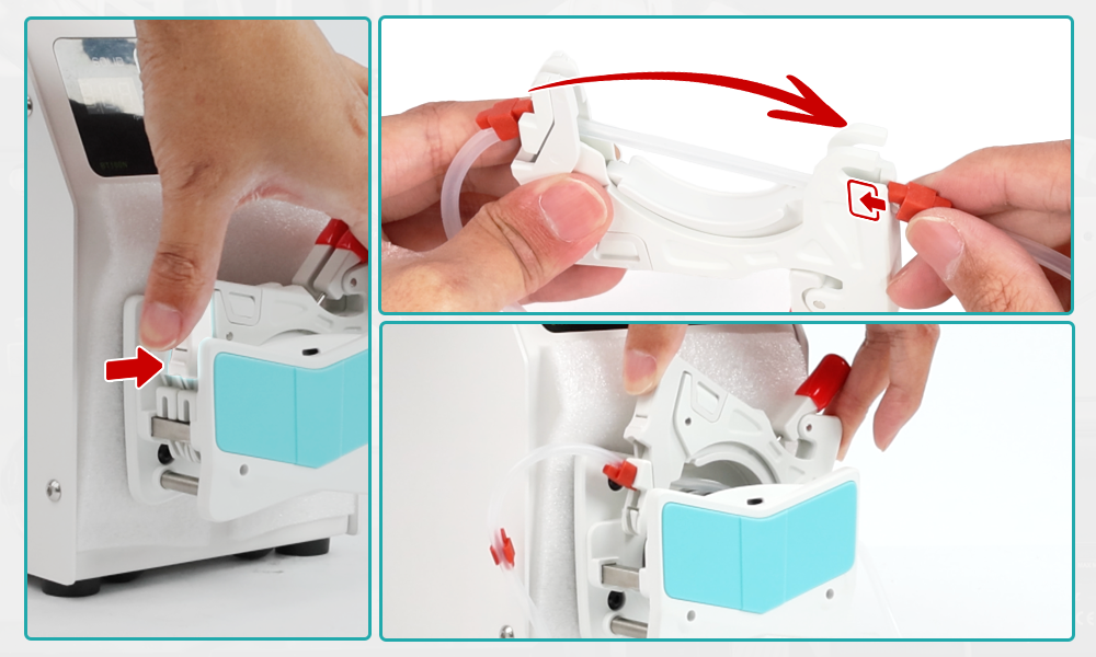 AMC series pump head requires the use of dedicated tubing fitted with pre‑attached red tube clamps, which securely clip onto the AMC pump head during installation. When you purchase one unit, the package includes a complementary set of compatible tubing—2 meters of each size (1×1, 2×1, and 2.4×0.8). If the tubing wears out and needs replacement, please contact our customer service to purchase a new one.
