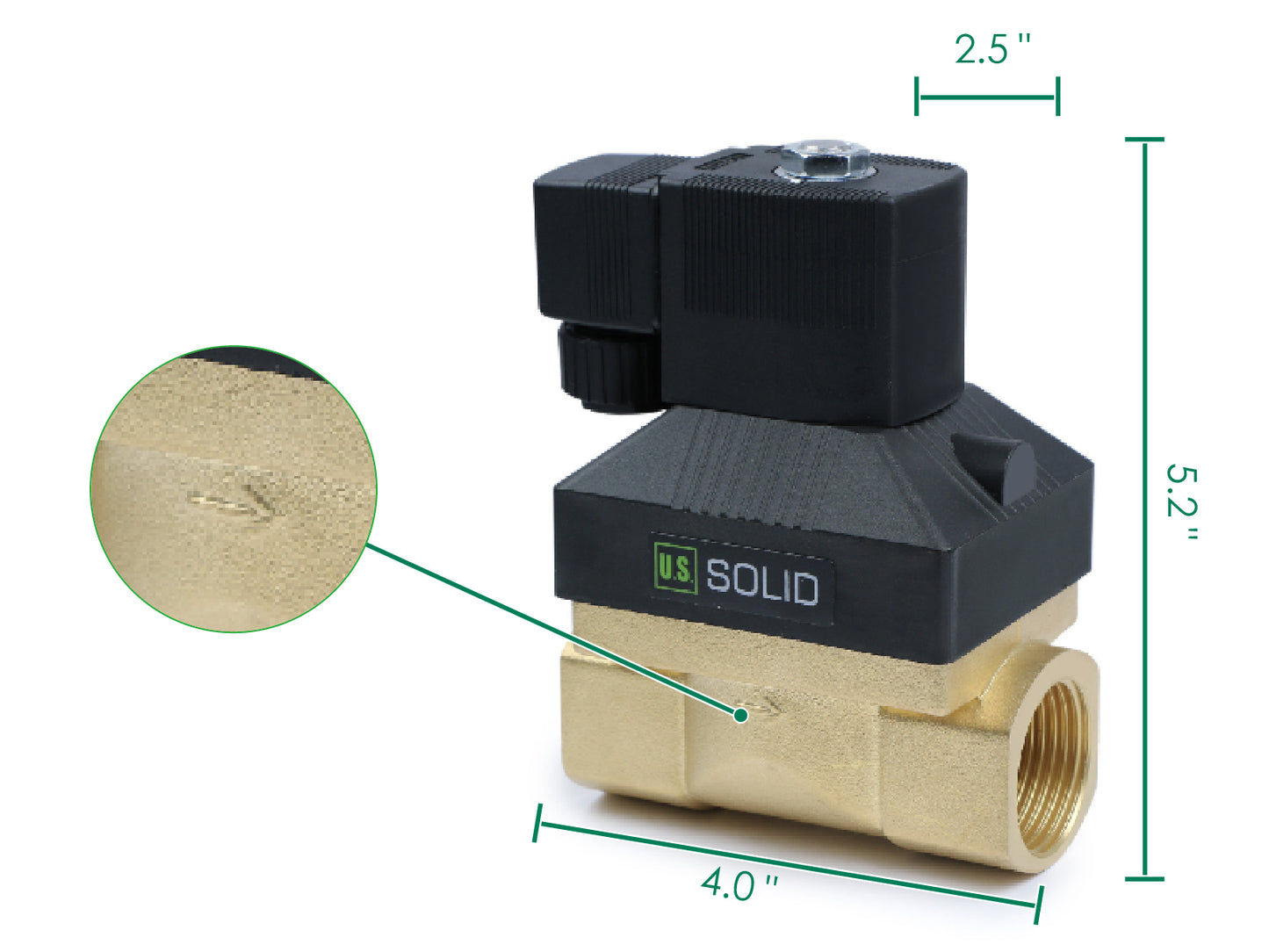 The arrow on the valve indicates the flow direction. Most U.S. Solid valves are unidirectional, meaning they are designed to operate correctly only when fluid flows in the direction of the arrow. If installed in the opposite direction, the valve may not function properly (e.g., a Normally Closed valve may fail to close).