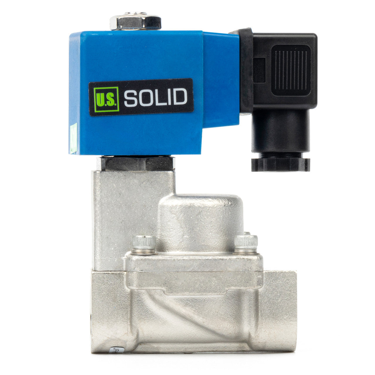 The arrow on the valve indicates the flow direction. Most U.S. Solid valves are unidirectional, meaning they are designed to operate correctly only when fluid flows in the direction of the arrow. If installed in the opposite direction, the valve may not function properly (e.g., a Normally Closed valve may fail to close).