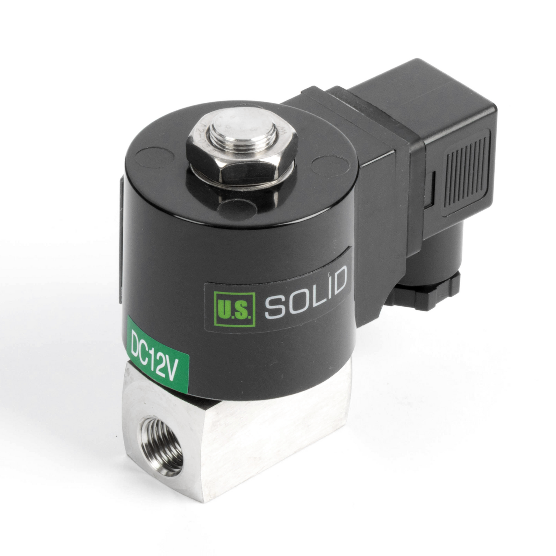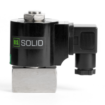 The arrow on the valve indicates the flow direction. Most U.S. Solid valves are unidirectional, meaning they are designed to operate correctly only when fluid flows in the direction of the arrow. If installed in the opposite direction, the valve may not function properly (e.g., a Normally Closed valve may fail to close).