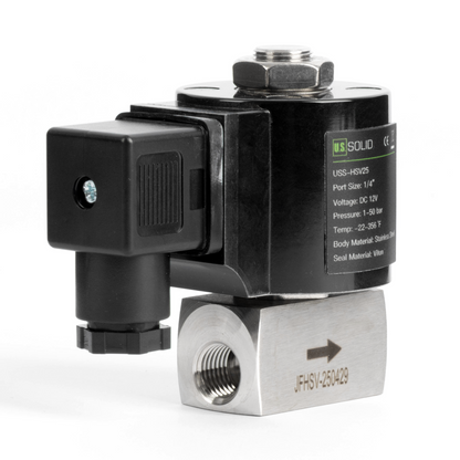 - High-Pressure Performance: Engineered to withstand 50 bar (725 psi) — multiple times stronger than standard solenoid valves. Ideal for hydraulic systems, industrial gas control, and heavy-duty compressors where pressure surges occur.