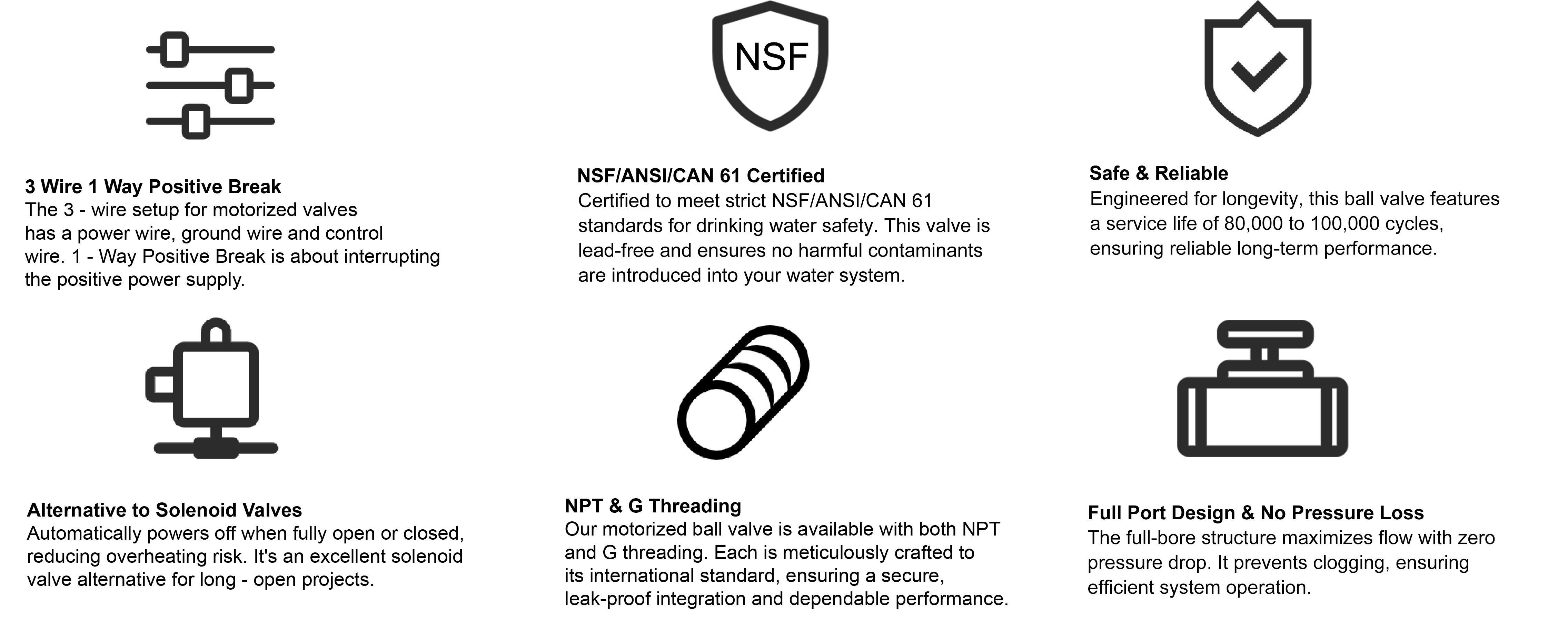 4.While the motorized ball valves have an IP65 rating, making them resistant to water spray, it is recommended to enclose the valve in a protective housing if permanently installed outdoors to ensure long-term durability.