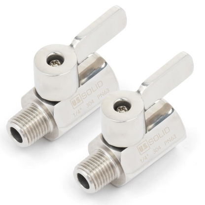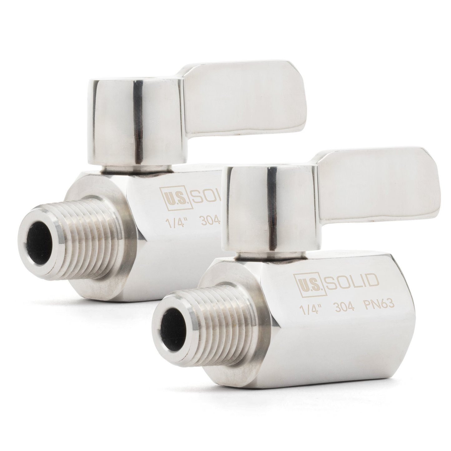Designed for reliable home plumbing applications, the U.S. Solid Mini Ball Valve is crafted from durable 304 stainless steel to resist corrosion from water, detergents, and outdoor exposure. Its 1/4" NPT / G internal-external threads ensure compatibility with standard household pipes, water heaters, washing machines, and garden hose systems. The 90-degree lever handle operates smoothly for quick shutoff during leaks or routine maintenance. Reinforced PTFE seals provide long-term leak resistance, while the lightweight yet sturdy design simplifies installation and handling. A practical, cost-effective solution for everyday needs such as: