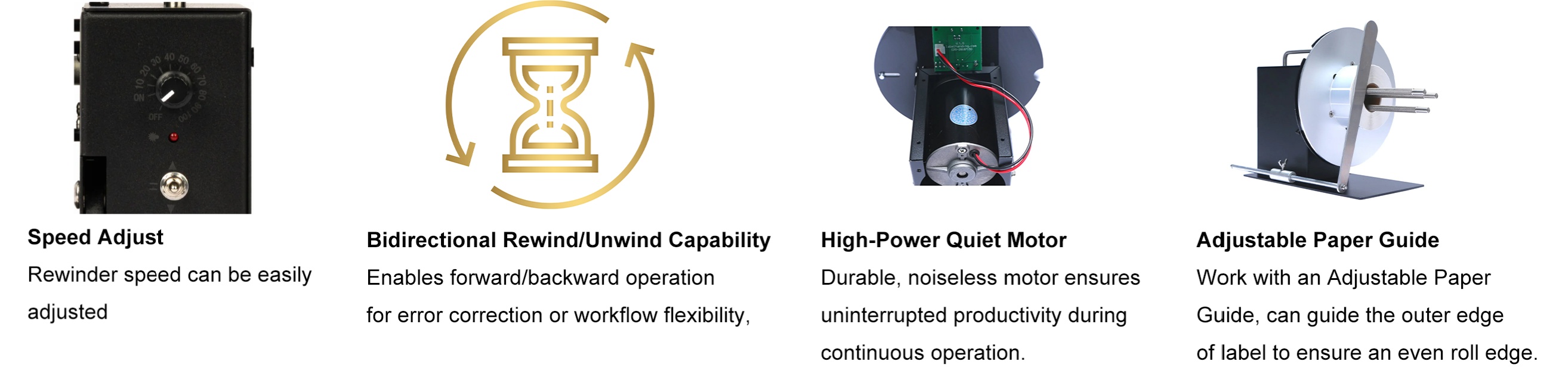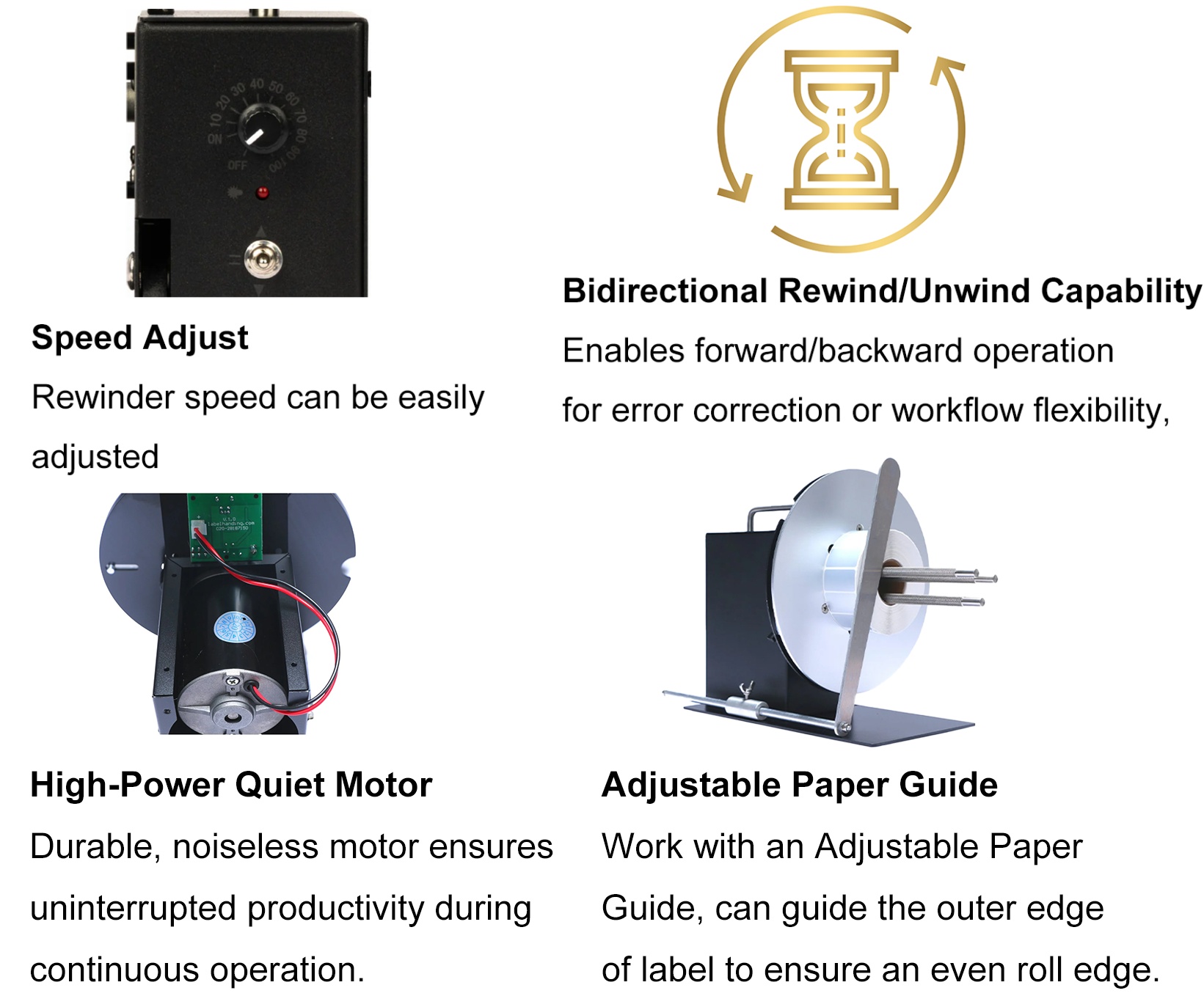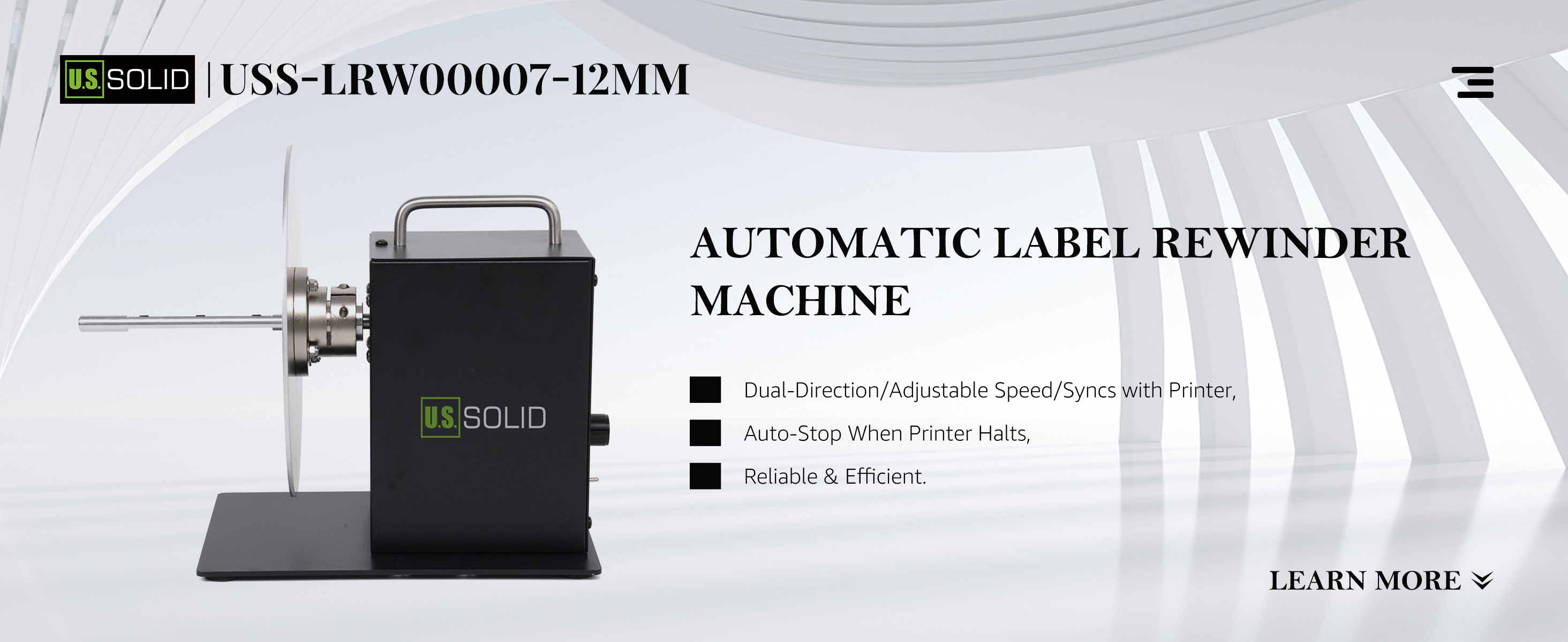 The U.S. Solid Automatic Label Rewinder seamlessly syncs with your printer to automate label management, featuring bi‑directional winding (forward and backward) for total control. It accommodates label rolls up to 120 mm wide and 185 mm in diameter with a standard 0.5" core holder. An adjustable paper guide and intuitive Forward/Off/Backward switch ensure precise, hands‑free operation. Engineered for durability, this rewinder delivers reliable performance in high‑volume environments—all backed by the U.S. Solid quality guarantee.