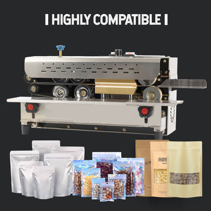 The Horizontal Automatic Continuous Sealing Machine is a high-efficiency and multi-functional packaging device applied across diverse industries for sealing bags or pouches. It is engineered to enable a continuous, automated sealing process, guaranteeing airtight and reliable packaging.