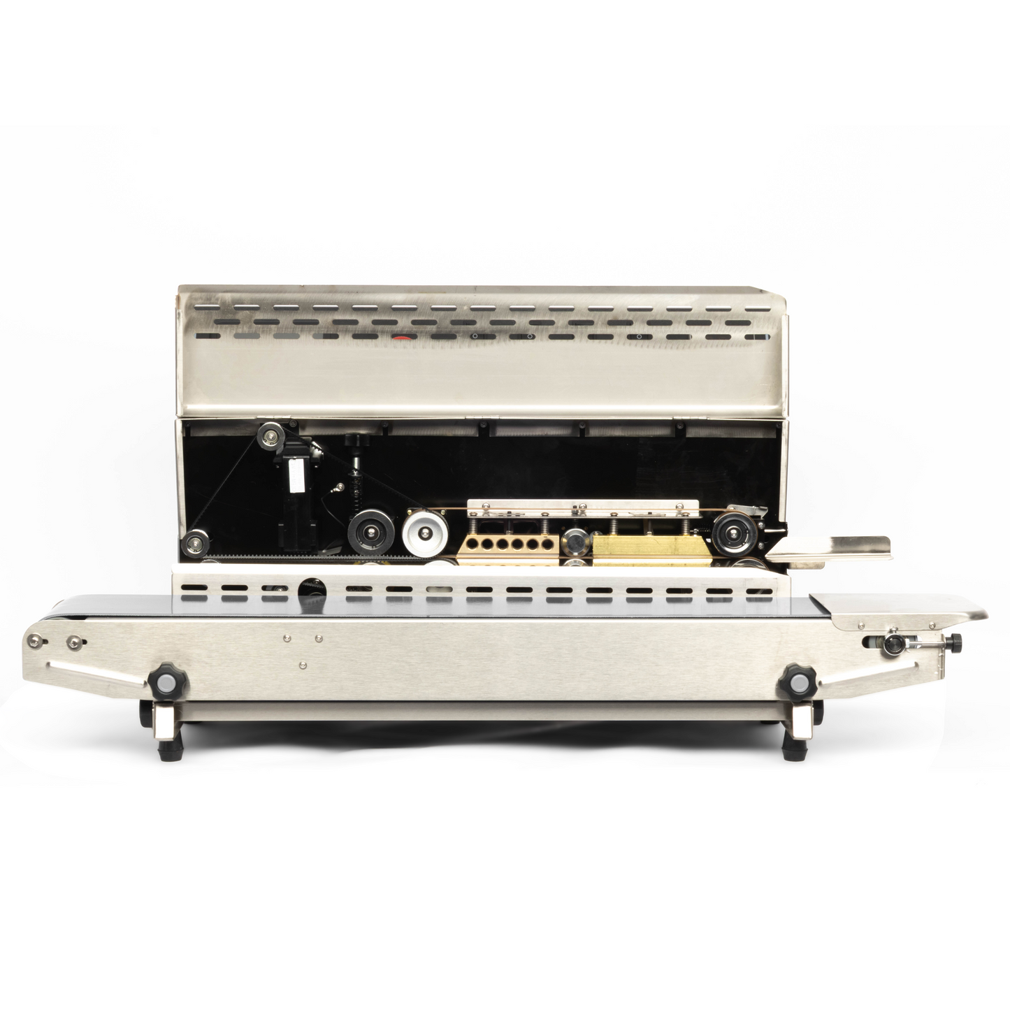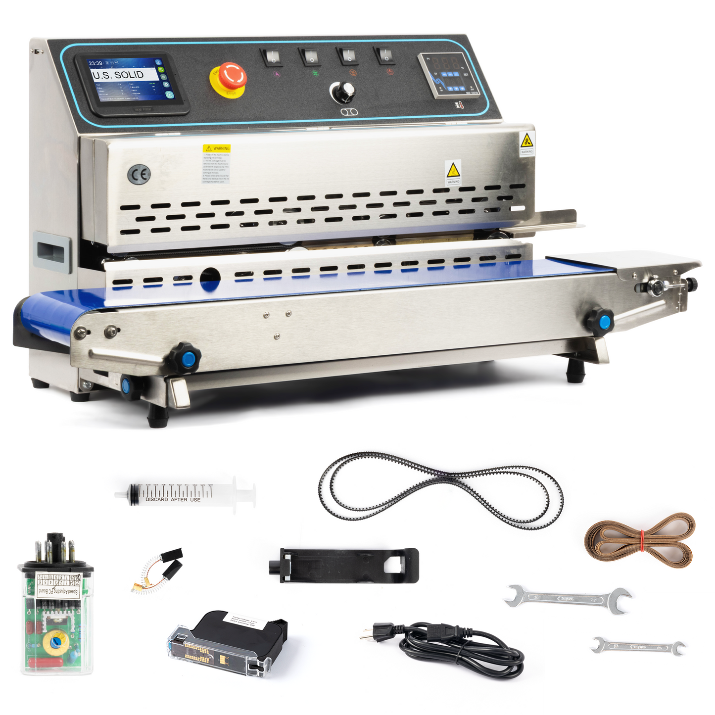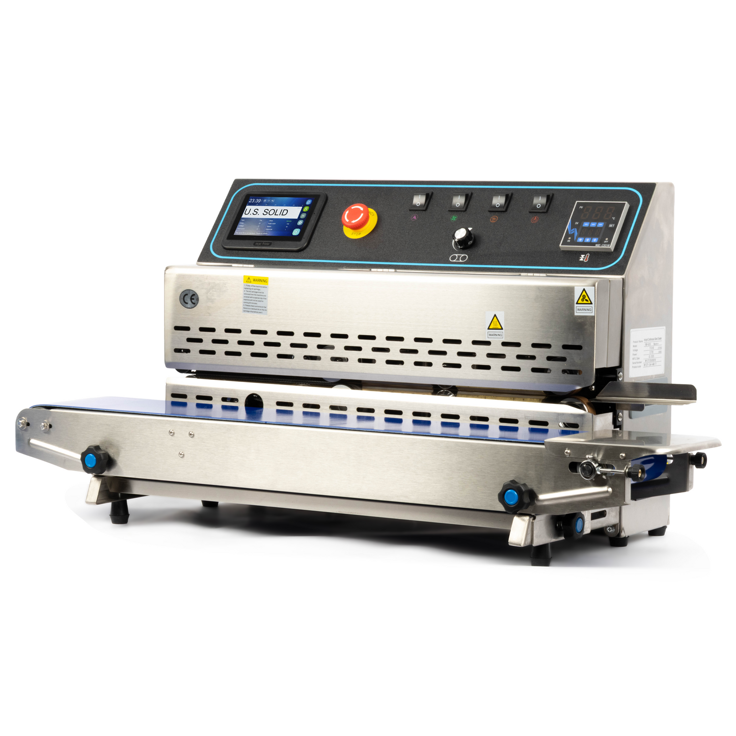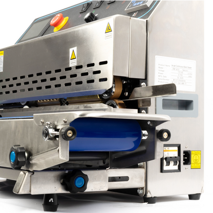 This industrial 2-in-1 system integrates high-speed bag sealing (up to 16 m/min) with smudge-resistant inkjet printing. It creates secure, leak-proof seals while printing crisp codes, dates, or barcodes. With a wide temperature range (0-572°F), it handles various materials like plastics and foils for bags up to 22 lbs. Built with a durable all-metal body and an intuitive touchscreen, it's ideal for high-volume food, pharmaceutical, and industrial packaging workflows.