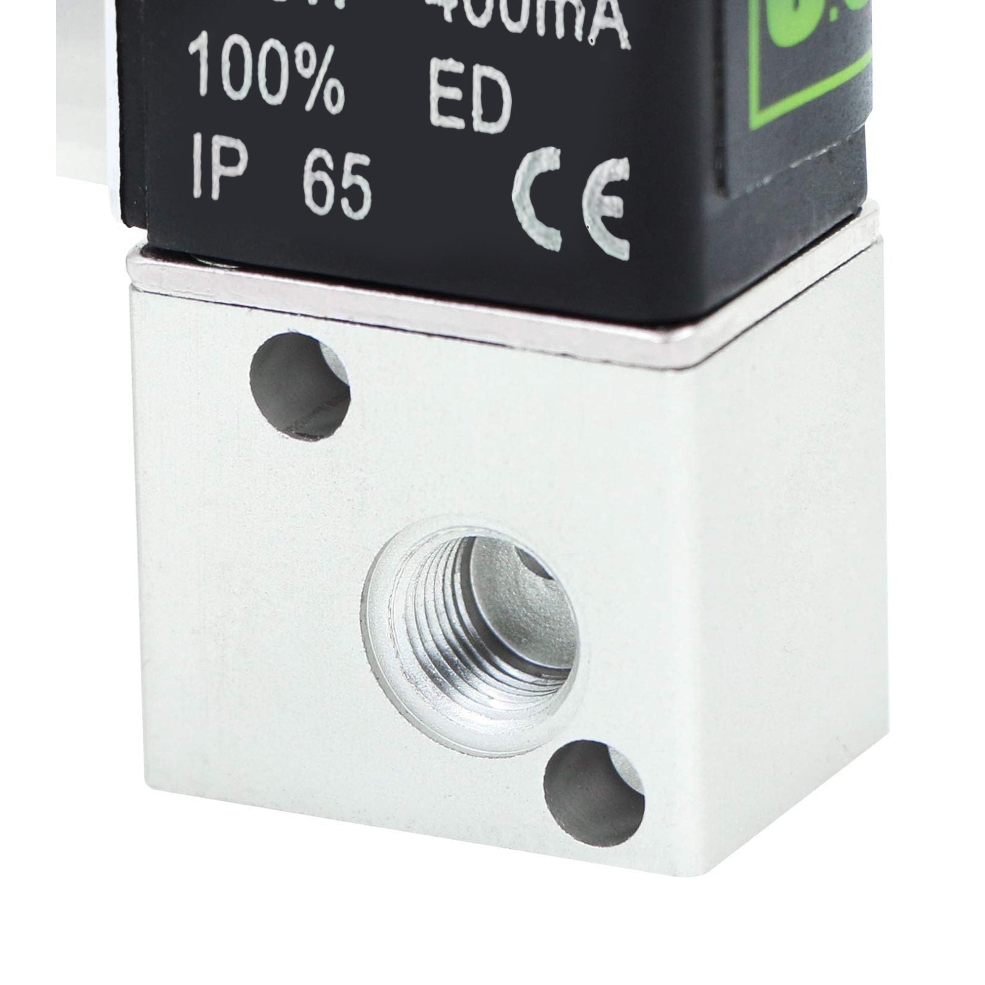 A U.S. Solid Válvula Solenoide Pneumática Elétrica de 3 vias e 2 posições direciona o ar para dispositivos pneumáticos. Ela faz a interface entre sistemas eletrônicos e pneumáticos, controlando posição, fluxo, pressão e temperatura. Esta válvula 3/2 possui três portas e dois estados de fluxo. No estado desligado, uma vedação está aberta e a outra fechada; quando energizada, ela inverte o fluxo. O ar pode fluir da porta 1 para a 2 ou a porta 2 pode ser expelida pela porta 3. Fabricada em liga de alumínio. Válvulas pneumáticas são amplamente utilizadas. Aeronaves as utilizam para o sistema anticongelante do para-brisa e para a remoção de água da chuva. Fabricantes de alimentos e bebidas os utilizam na produção. As válvulas U.S. Solid são confiáveis, de baixo consumo de energia, duráveis e fáceis de instalar, manter e controlar, com conexões pré-cabeadas. Os furos de instalação para esta válvula são roscados, com dimensões M4×0,7×2.