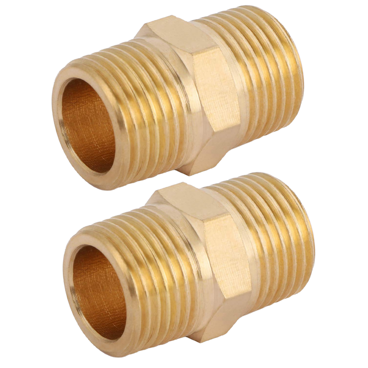 U.S. Solid Niple sextavado de latão para tubo - 3/8" x 3/8" NPT Adaptador macho para tubo (2 peças)