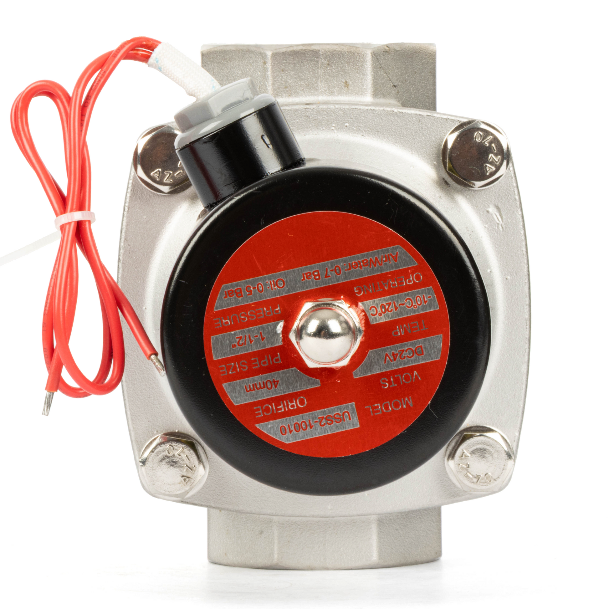 1-1/2" Stainless Steel Solenoid Valve - 24V DC Normally Closed, Viton Seal